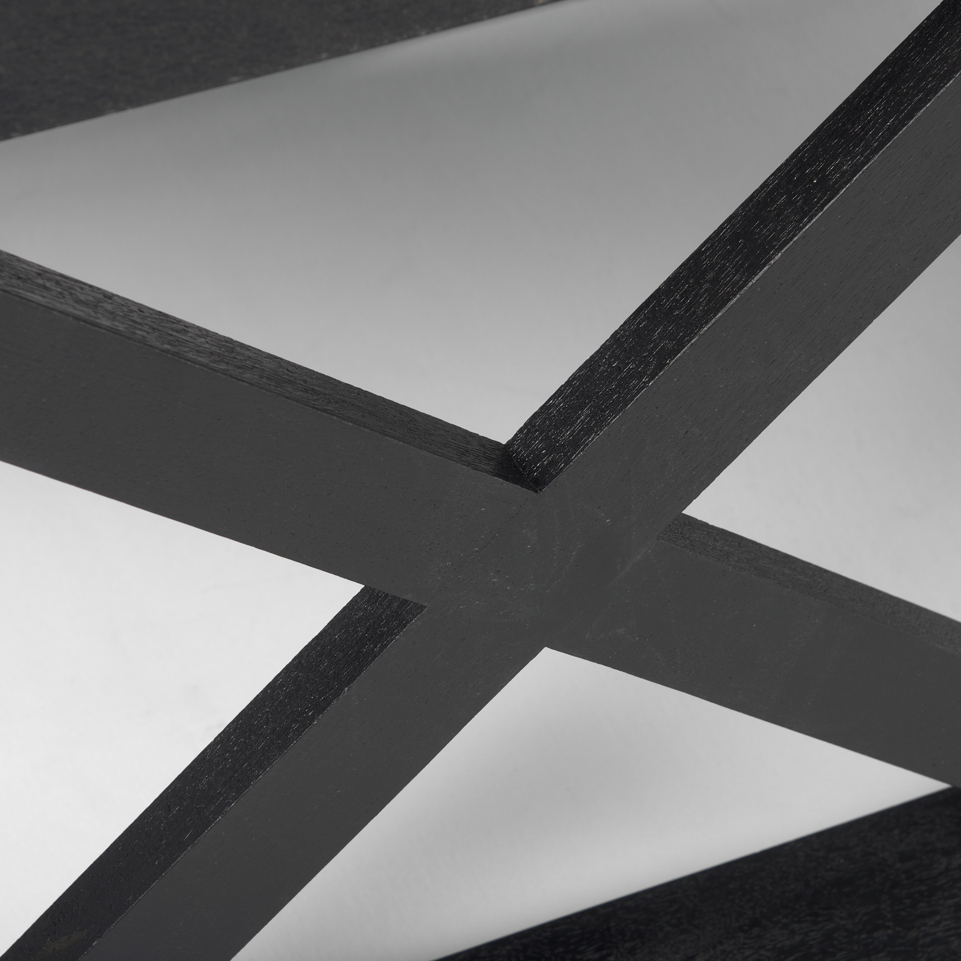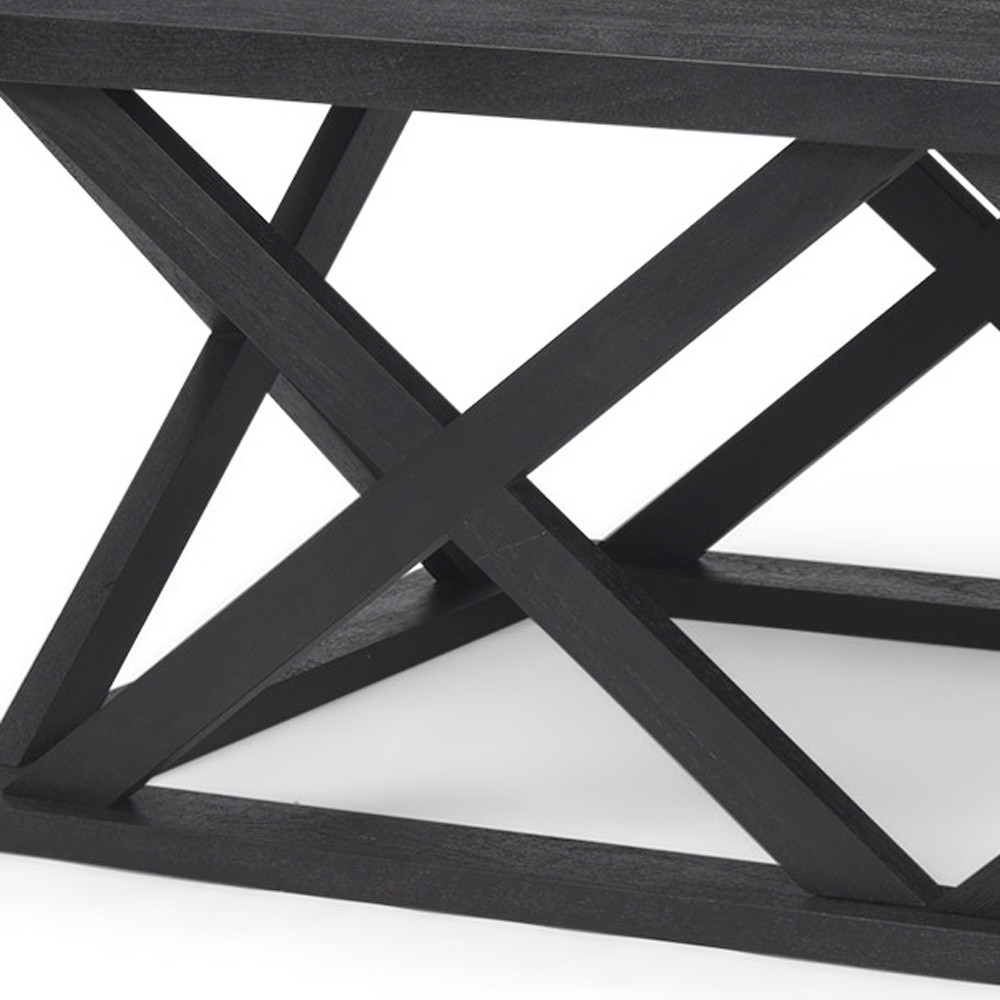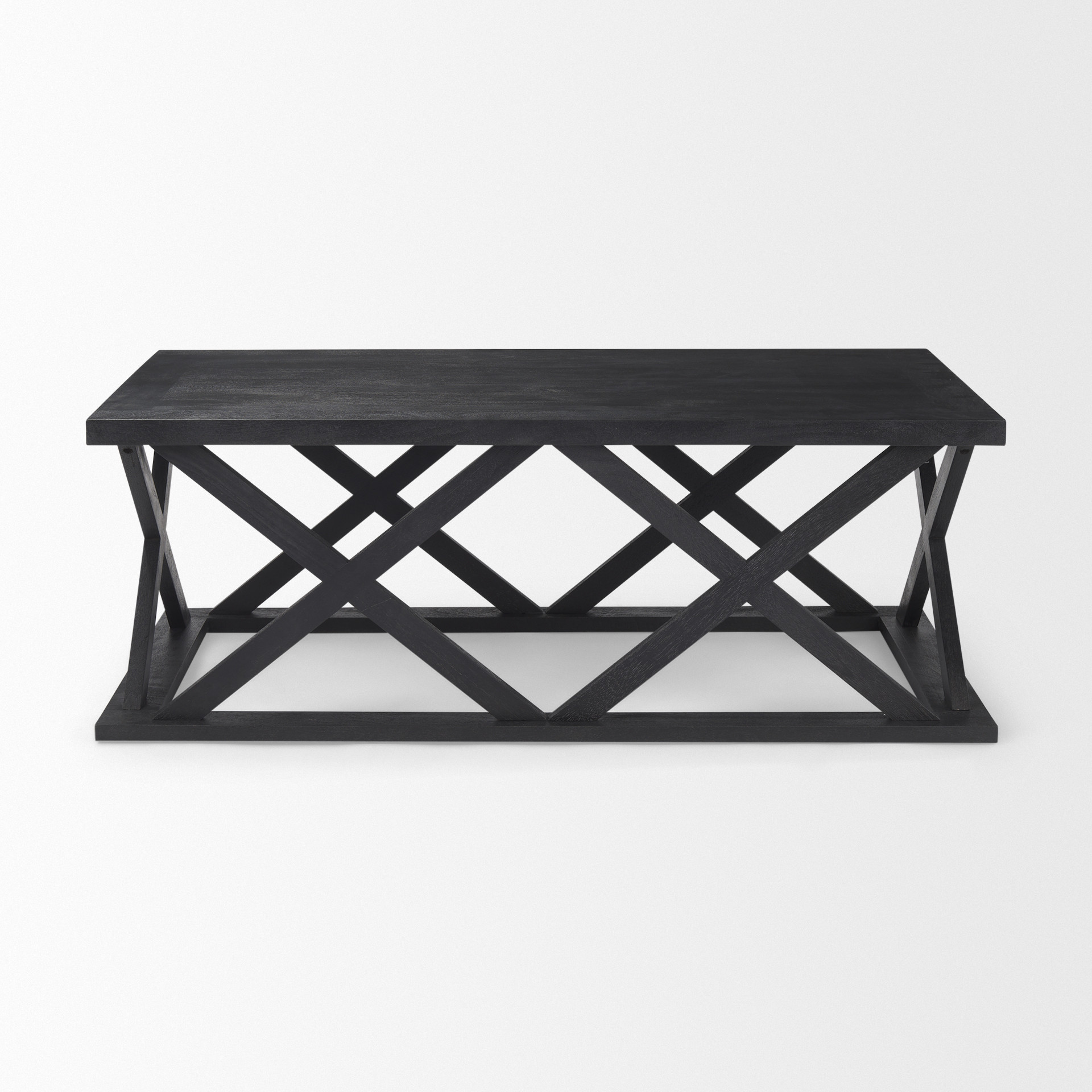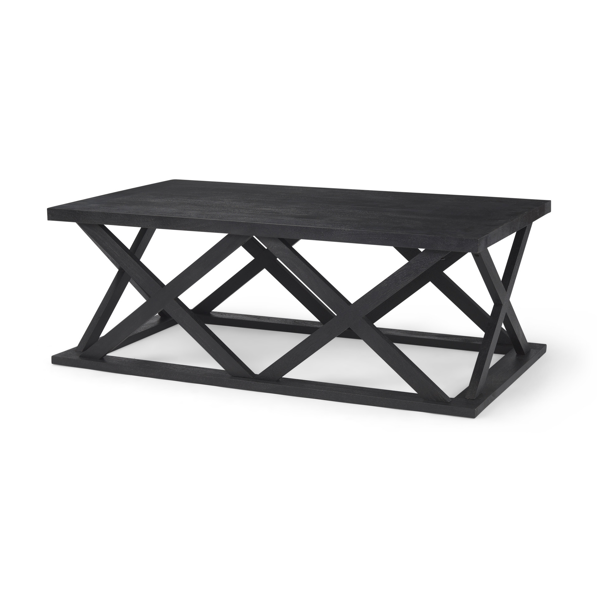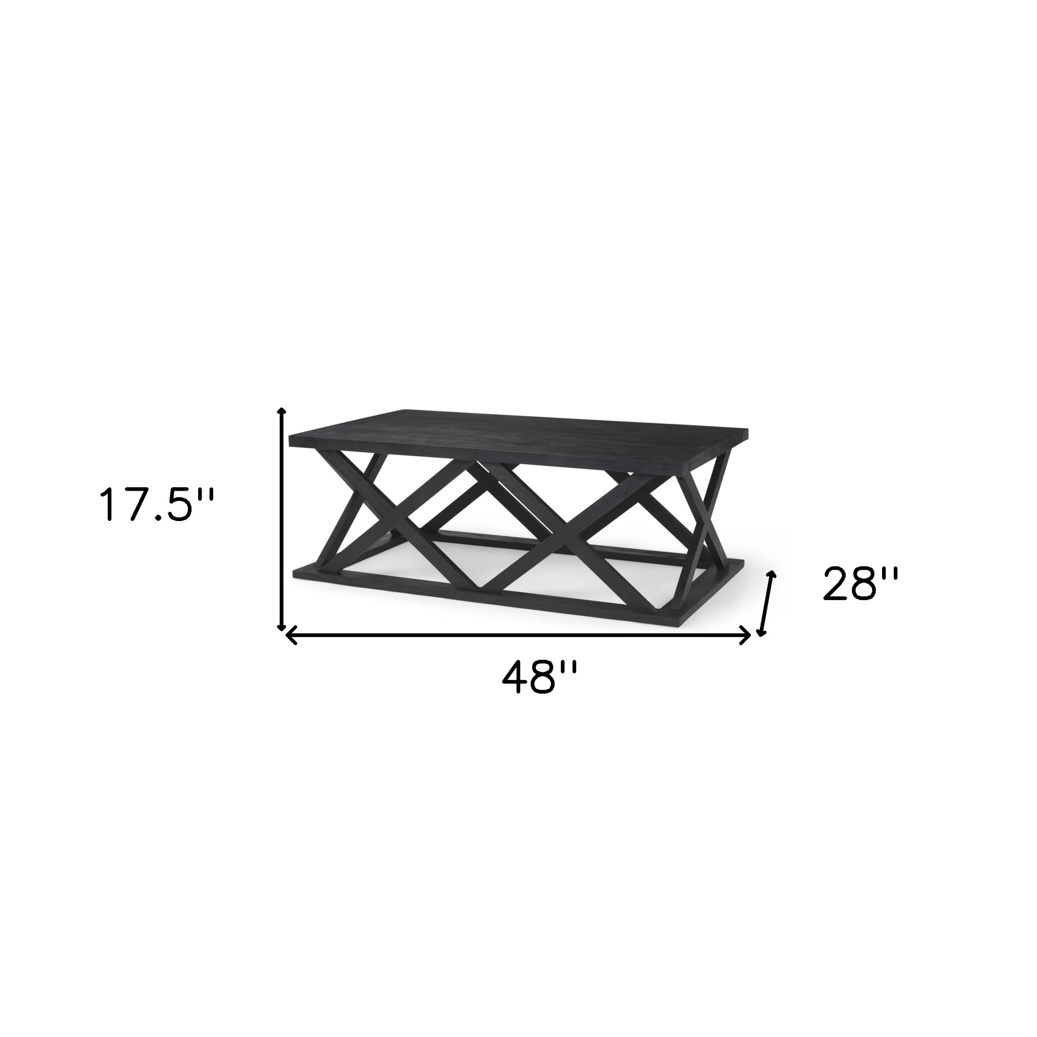 Add handsome, fashionable design to your living space with this 48-inch black solid wood frame coffee table. Made of solid wood, the rustic black coloration throughout gives this piece an updated and refreshing look. This solid wood table features an open geometric lattice base design. This updated classic rectangular table will be a great accent in any room it has an attractive design that will definitely breathe some fresh air into your interior17.5-inch h x 48-inch w x 28-inch d.