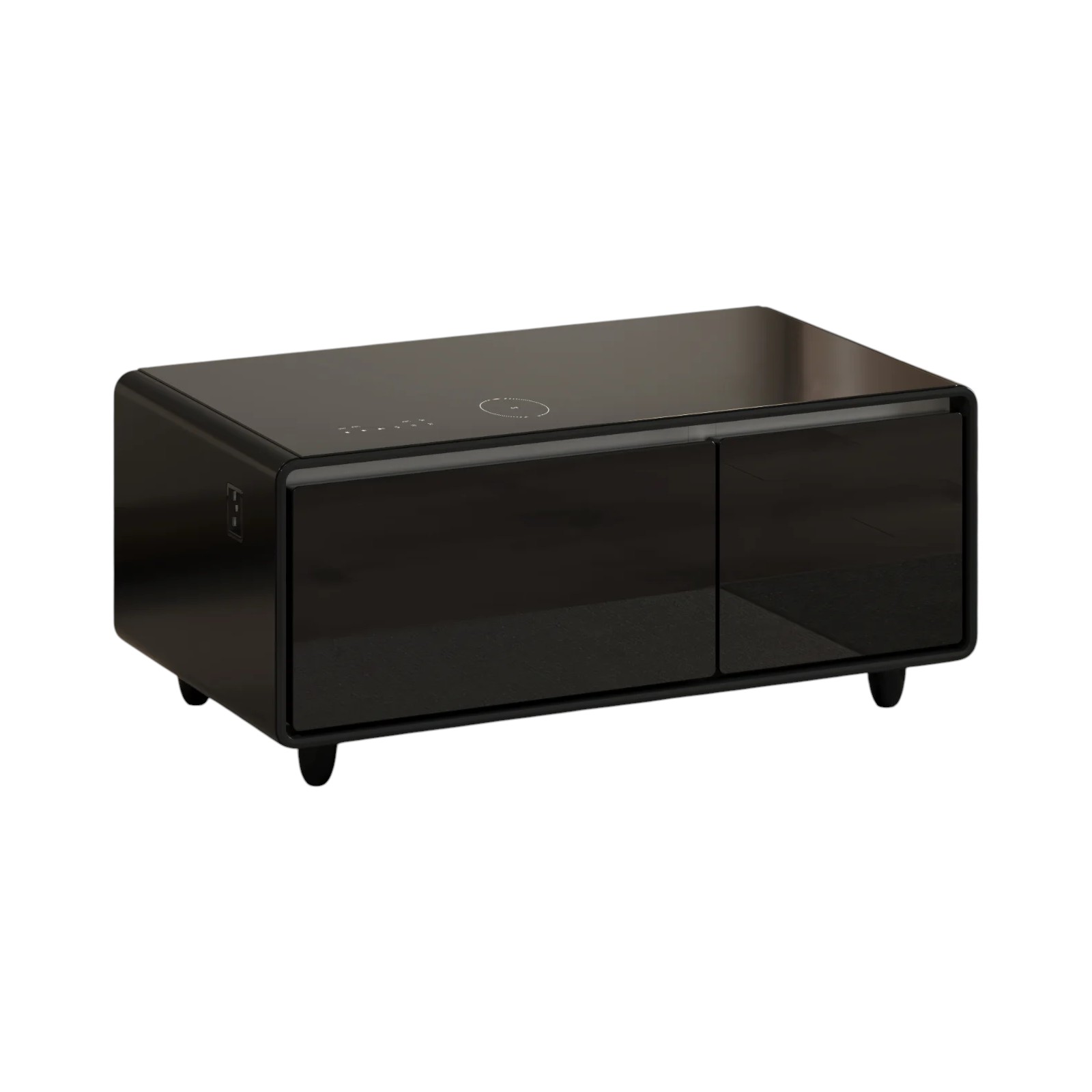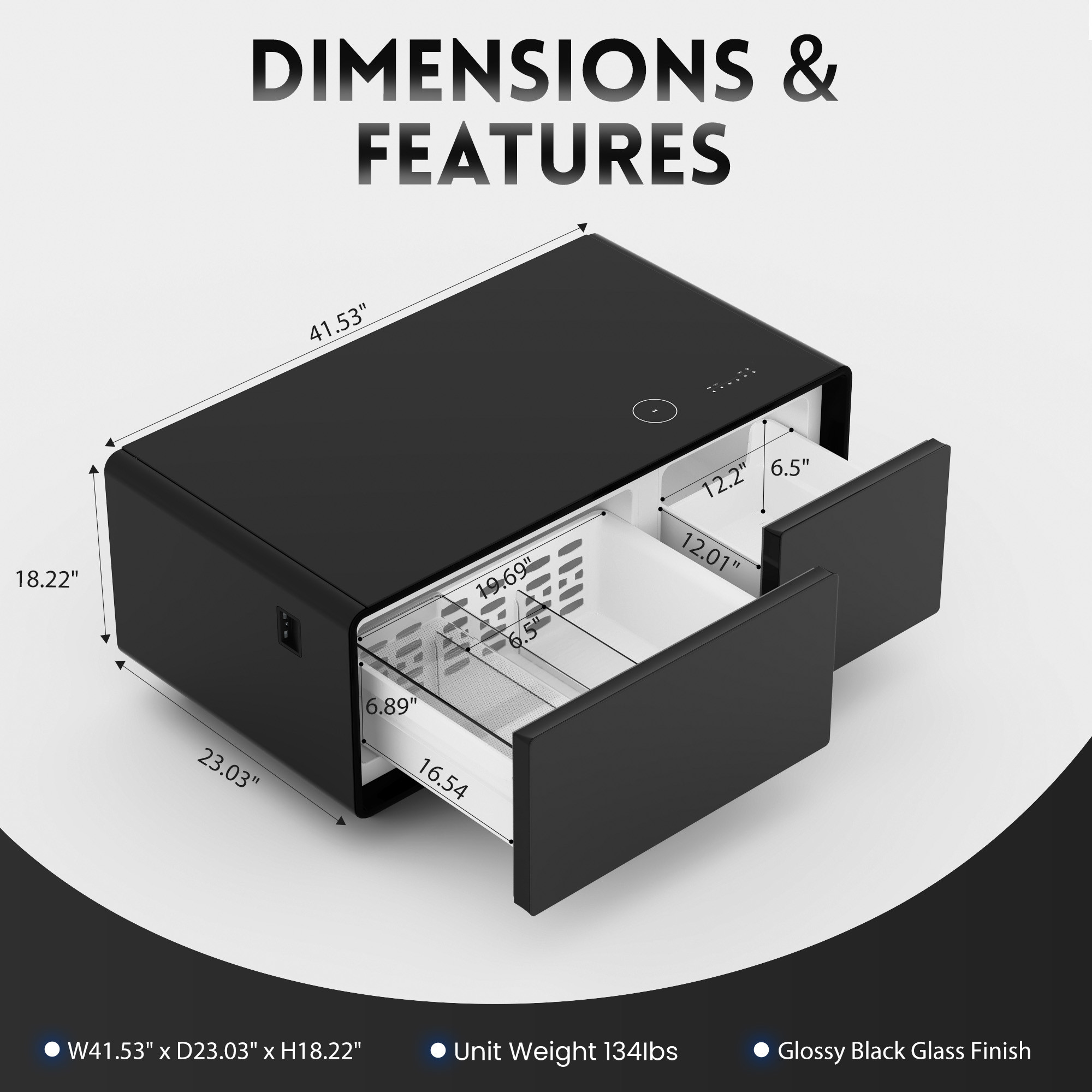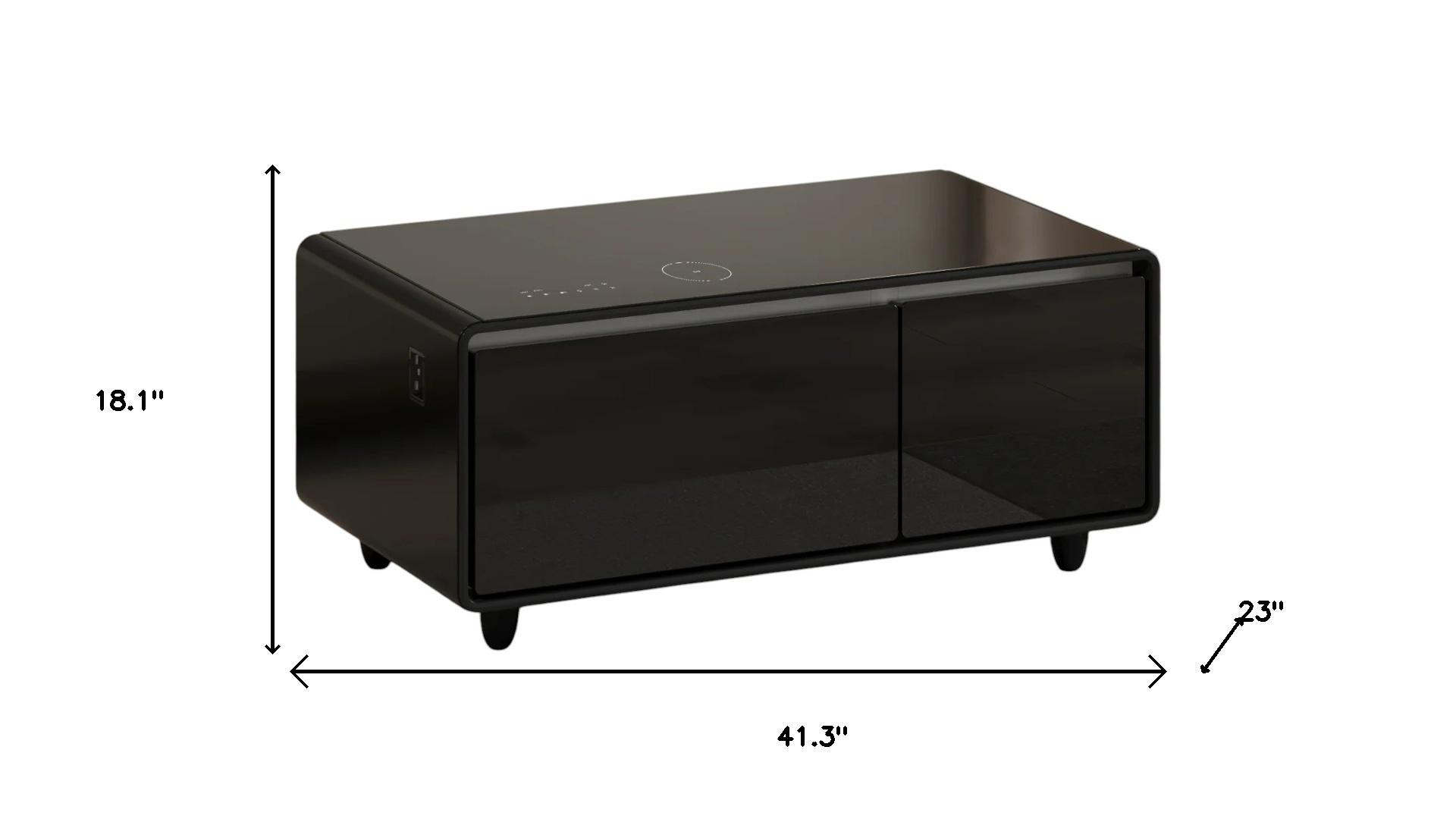 Show off your exquisite taste with this 18-inch black synthetic laminate and reclaimed wood end table with two drawers and usb port. The black coloration runs throughout this good looking solid wood and synthetic laminate table. Includes 2 easy open drawers for storage of the small essentials. Side tables are a great way to flank your sofa, use as an accent next to your favorite chair, or can even be used bedside. You can also use it as an entryway table to hold your keys. 18.1-inch h x 41.3-inch w x 23-inch d.