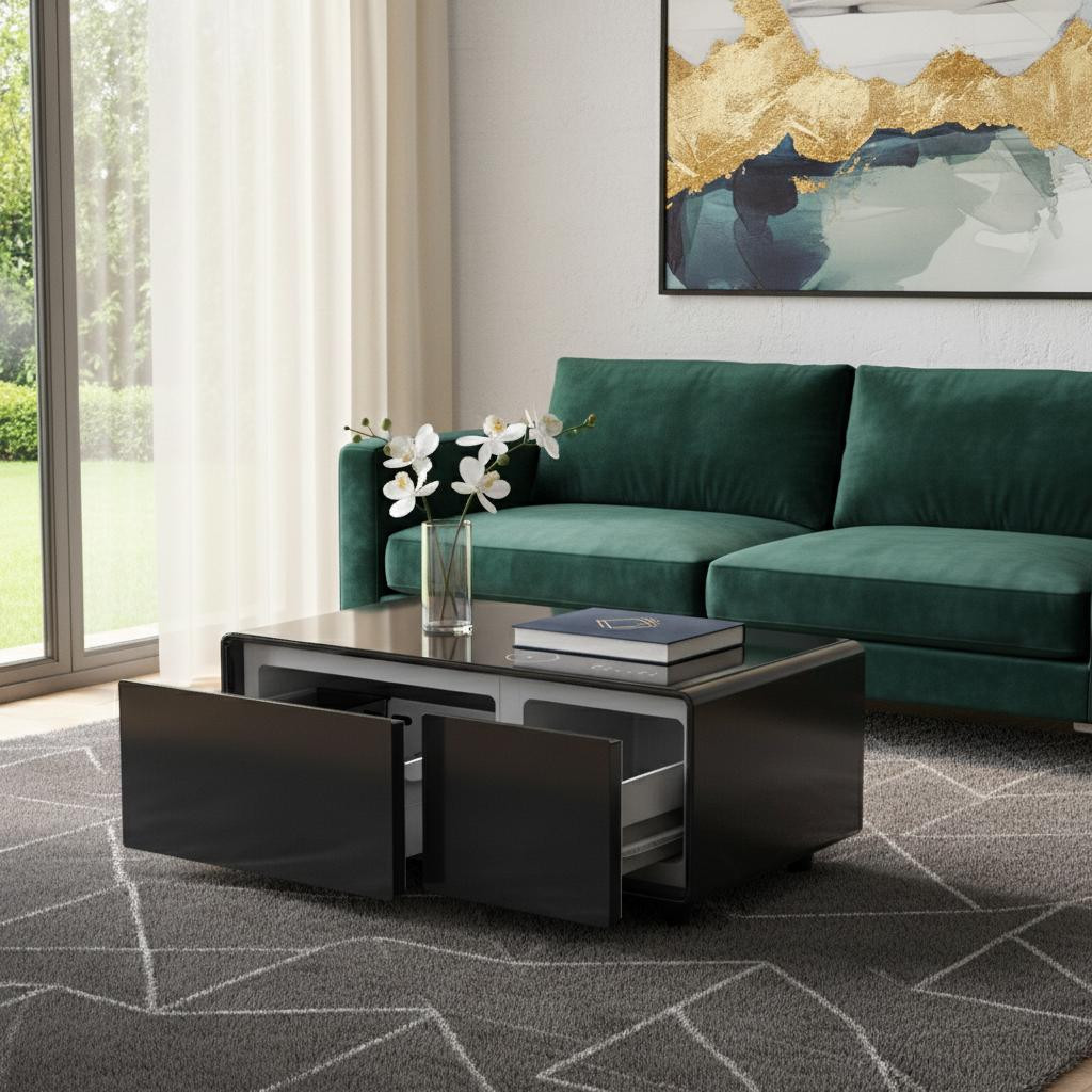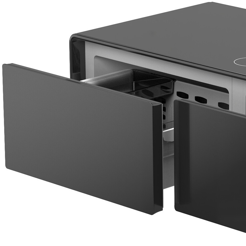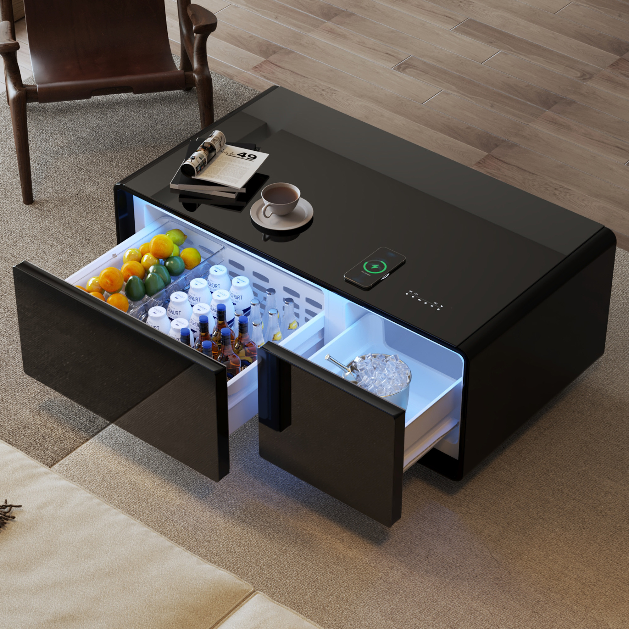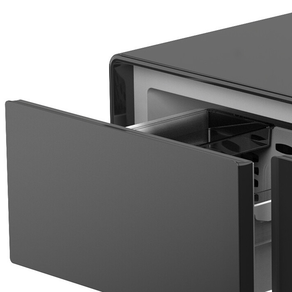 Show off your exquisite taste with this 18-inch black synthetic laminate and reclaimed wood end table with two drawers and usb port. The black coloration runs throughout this good looking solid wood and synthetic laminate table. Includes 2 easy open drawers for storage of the small essentials. Side tables are a great way to flank your sofa, use as an accent next to your favorite chair, or can even be used bedside. You can also use it as an entryway table to hold your keys. 18.1-inch h x 41.3-inch w x 23-inch d.