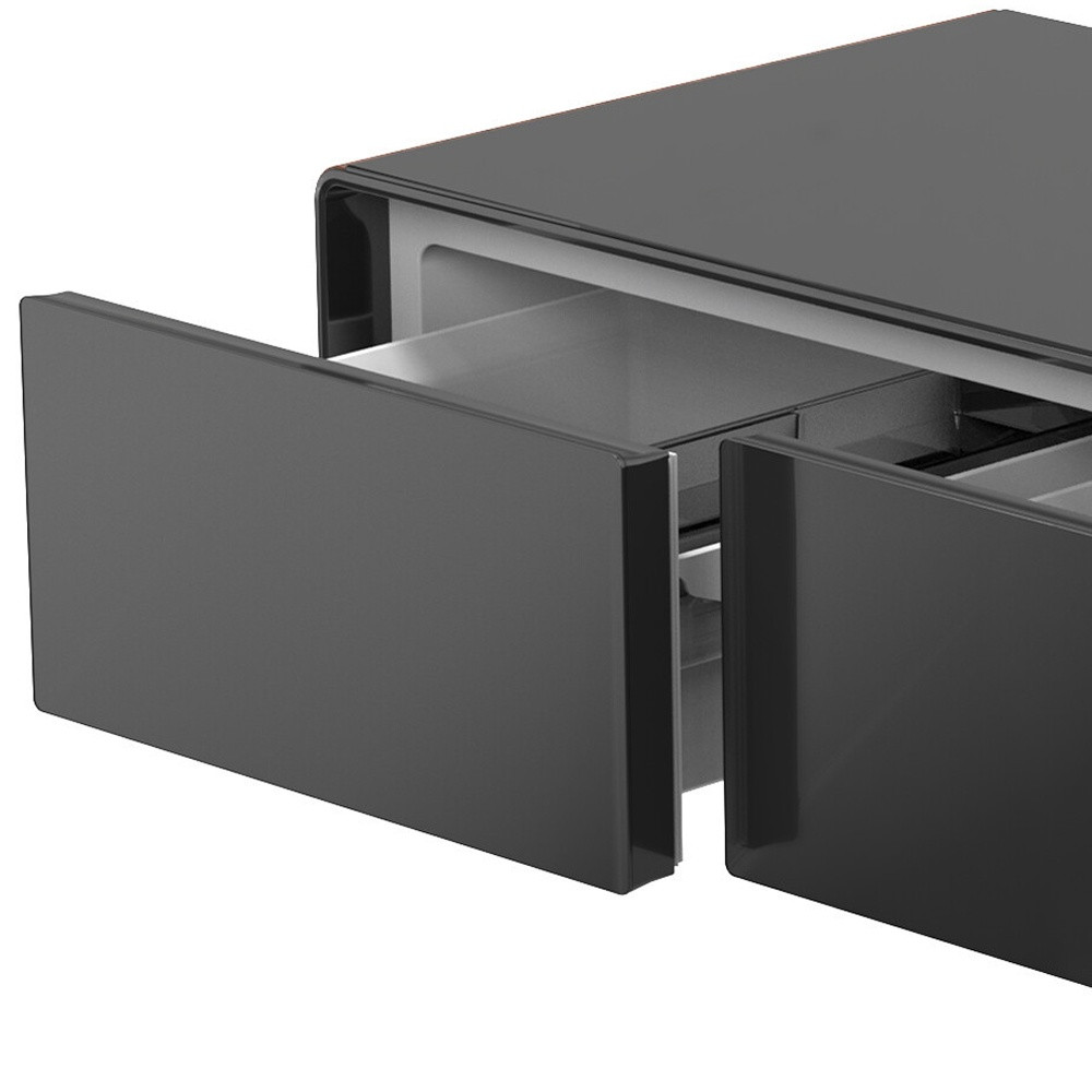 Optimize your space and add some charm to your room with the 18-inch brown and black synthetic laminate and reclaimed wood end table with two drawers and usb port. The black coloration of the high quality solid wood base marries nicely with the brown synthetic laminate top. Includes 2 easy open drawers for storage of the small essentials. A great accent on either side of the sofa or bed, this adorable end or side table is just what you need. You can match it with other pieces to get the ideal look for your place. 18.1-inch h x 51-inch w x 27.8-inch d.