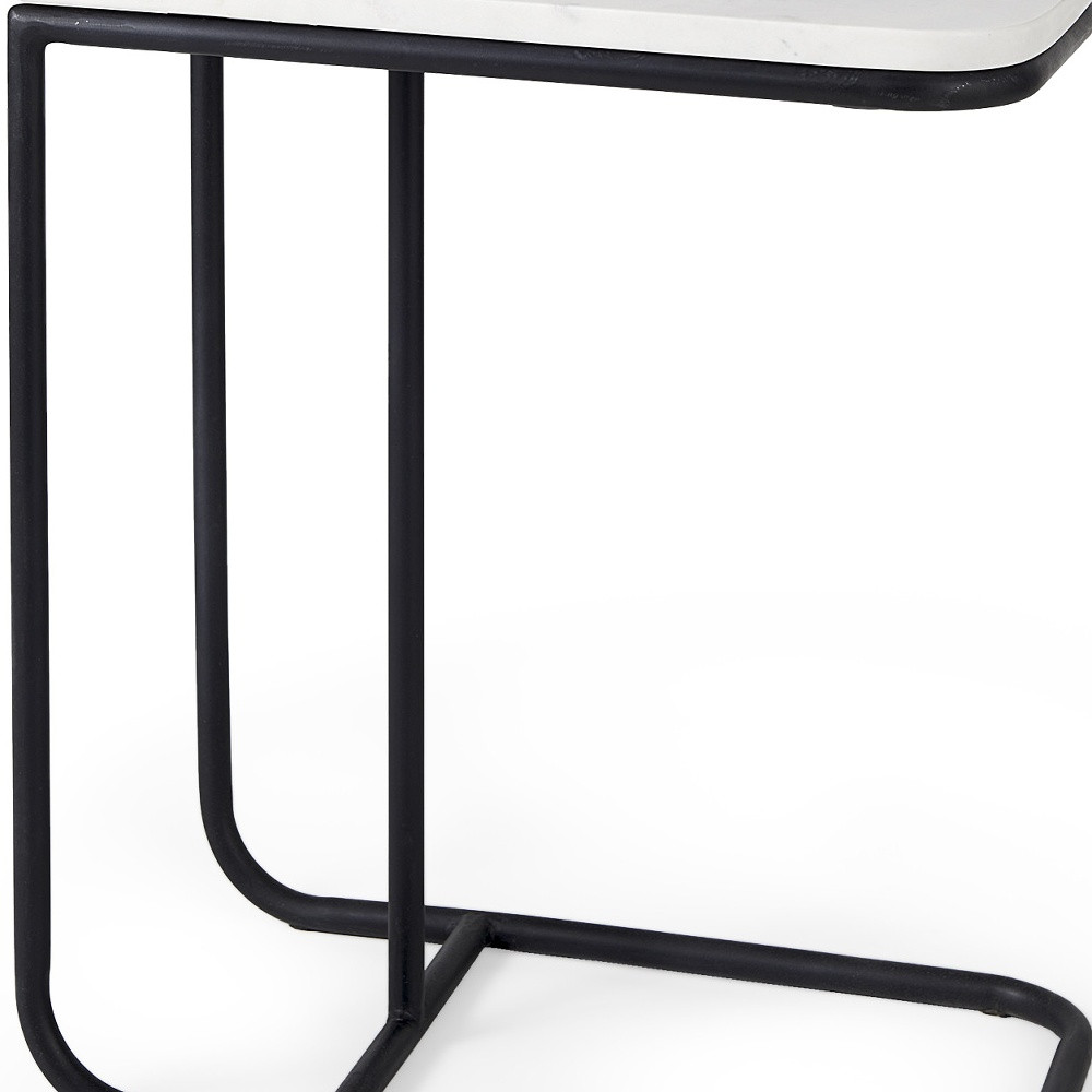 Optimize your space and add some charm to your room with the 23-inch white and black marble and metal c table end table. The base of this table is made from metal in a matte black color that is a nice contrast to the white marble tabletop. An ideal location for placing your snacks and drinks, and a place to keep your lamp, frames, or other accessories. You can also use it as an entryway table to hold your keys. 23-inch h x 20-inch w x 12-inch d.