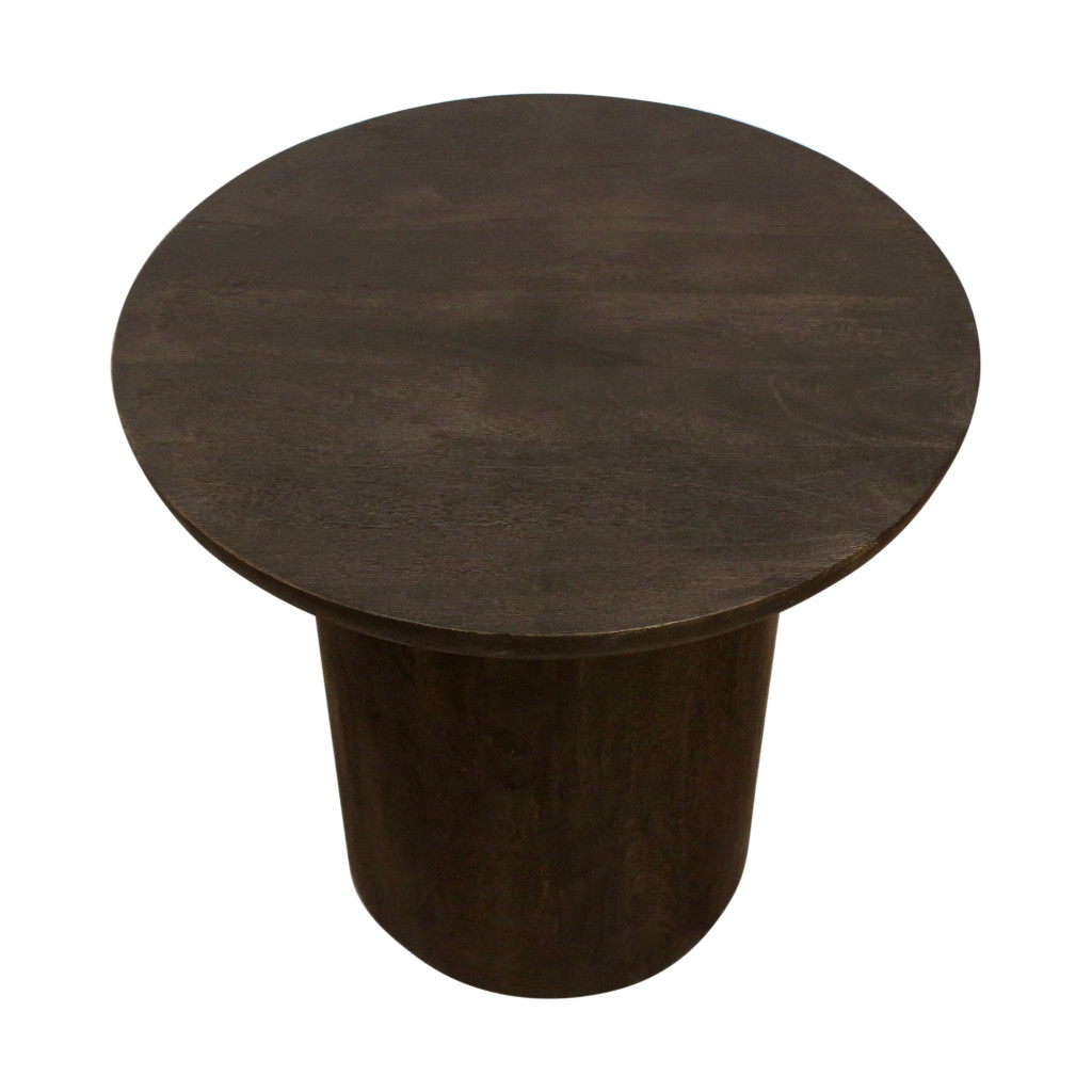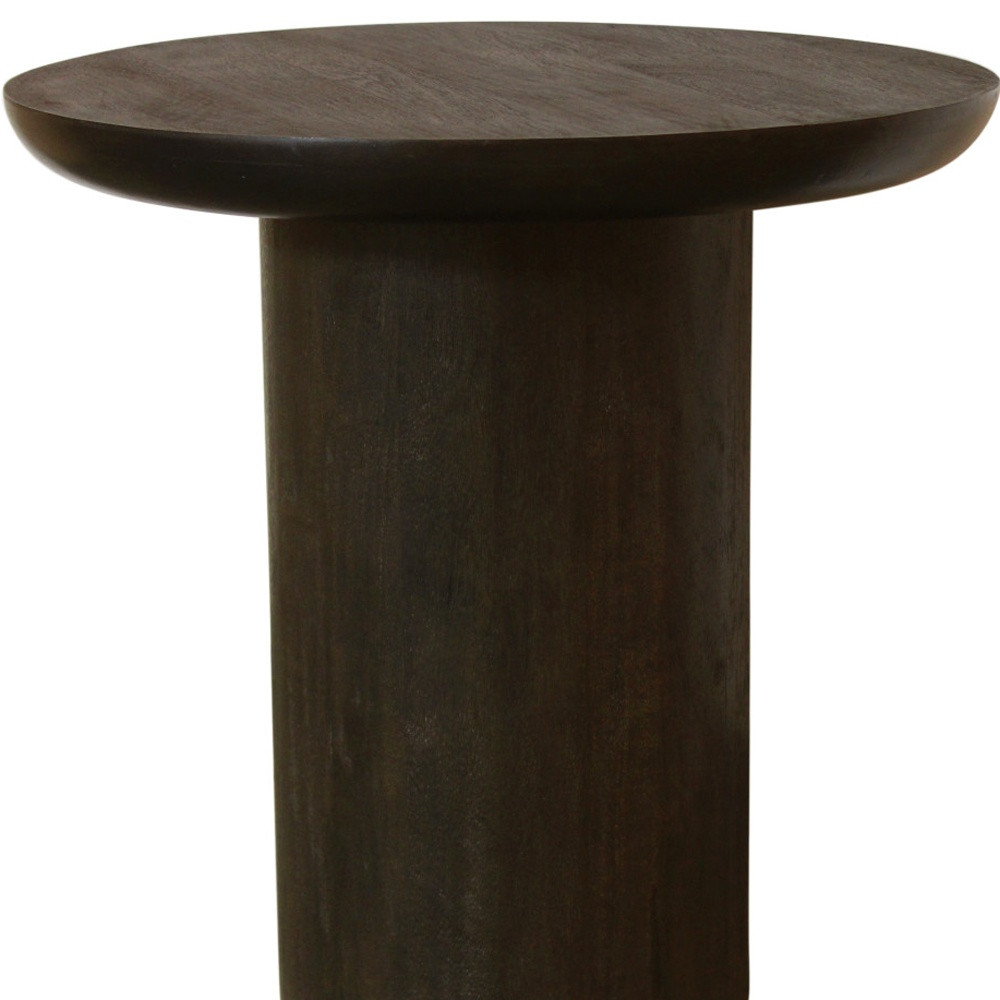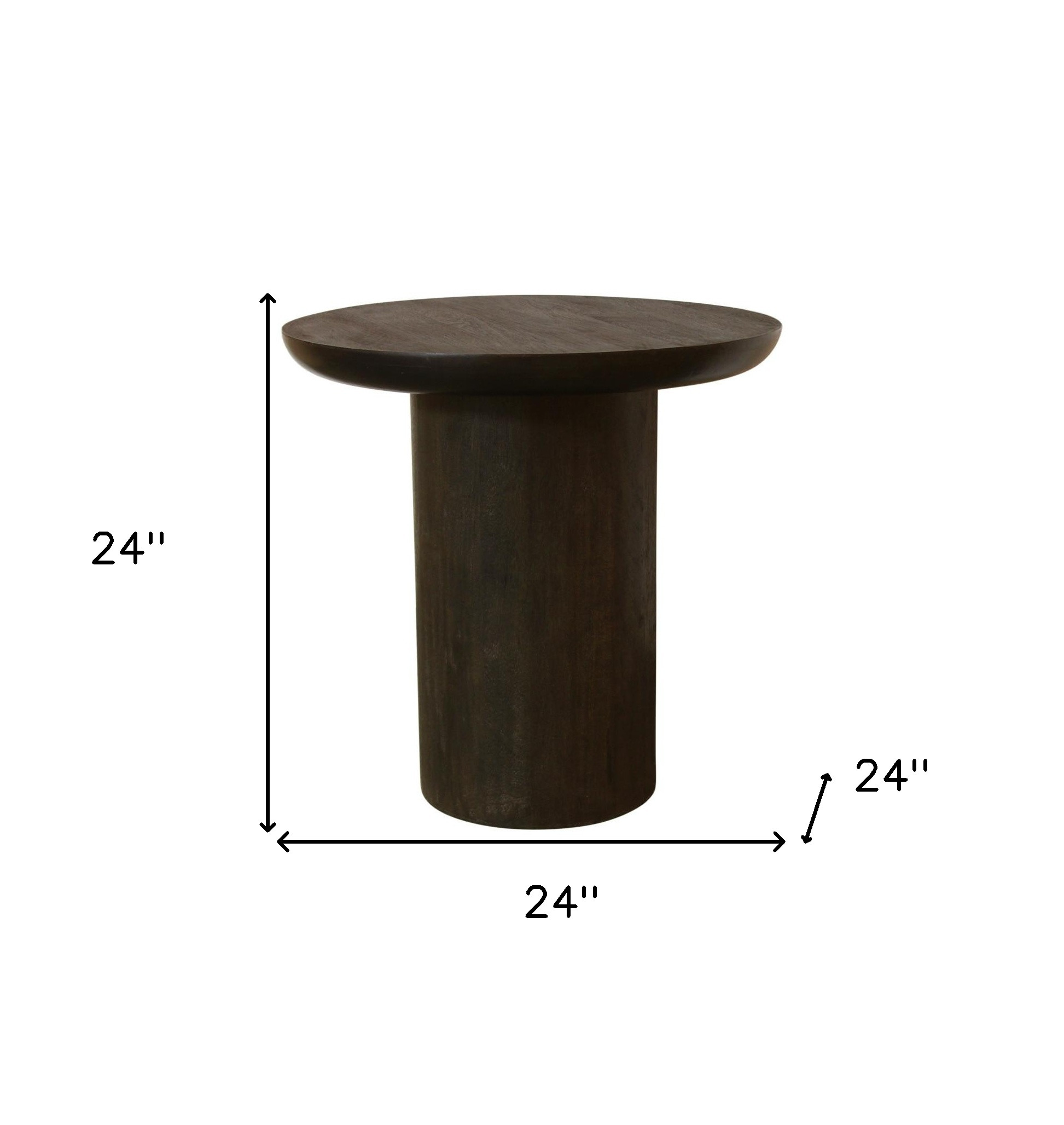 Show off your exquisite taste with this 24-inch dark brown distressed solid wood round pedestal end table. This table is made from solid wood in a dark brown color throughout the base and top. The purposefully distressed finish gives this table an authentically rustic feel. Side tables are a great way to flank your sofa, use as an accent next to your favorite chair, or can even be used bedside. You can match it with other pieces to get the ideal look for your place. 24-inch h x 24-inch w x 24-inch d.