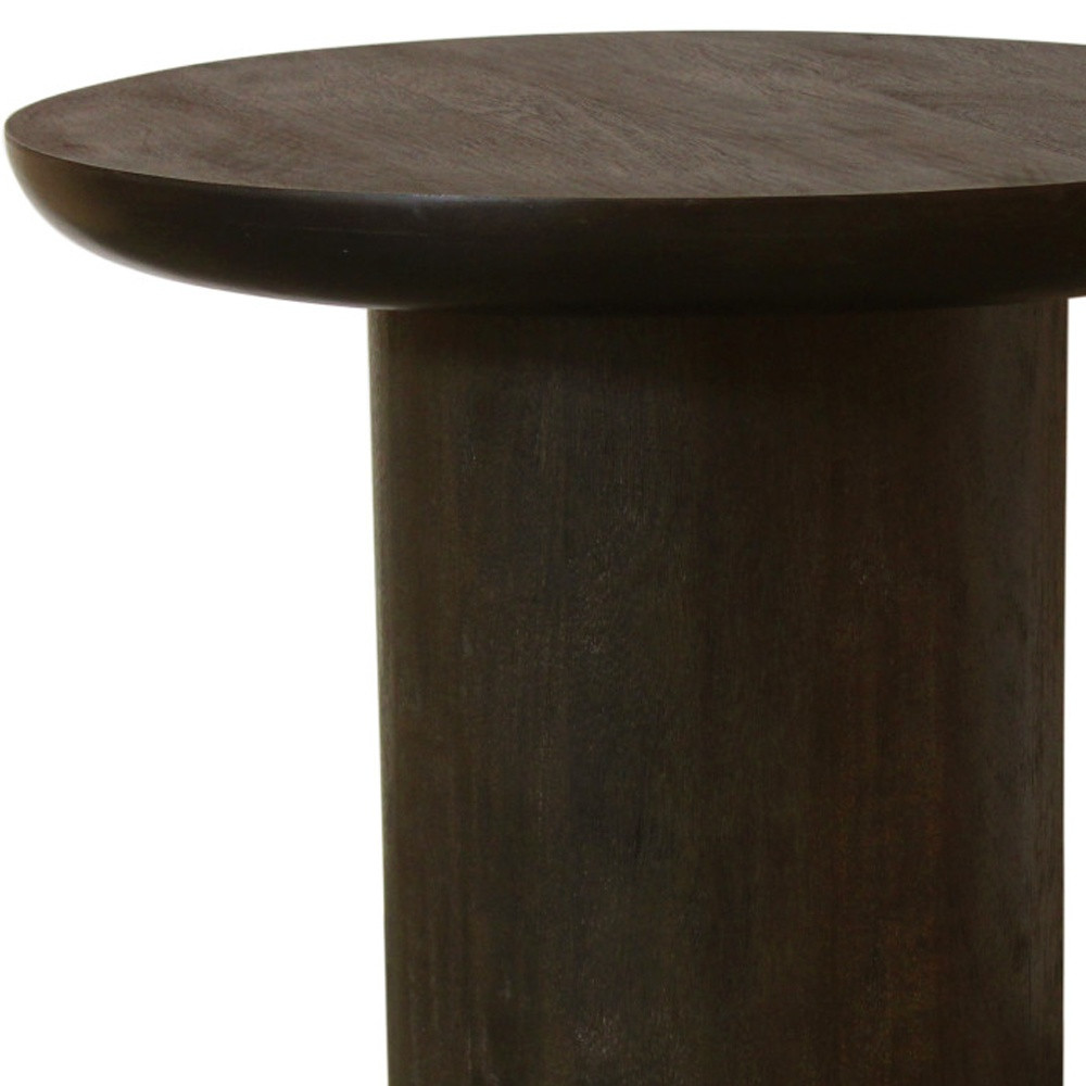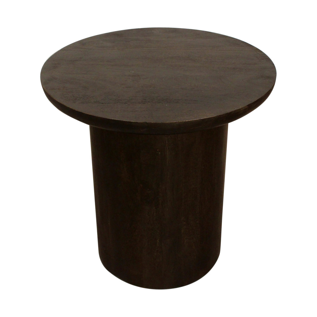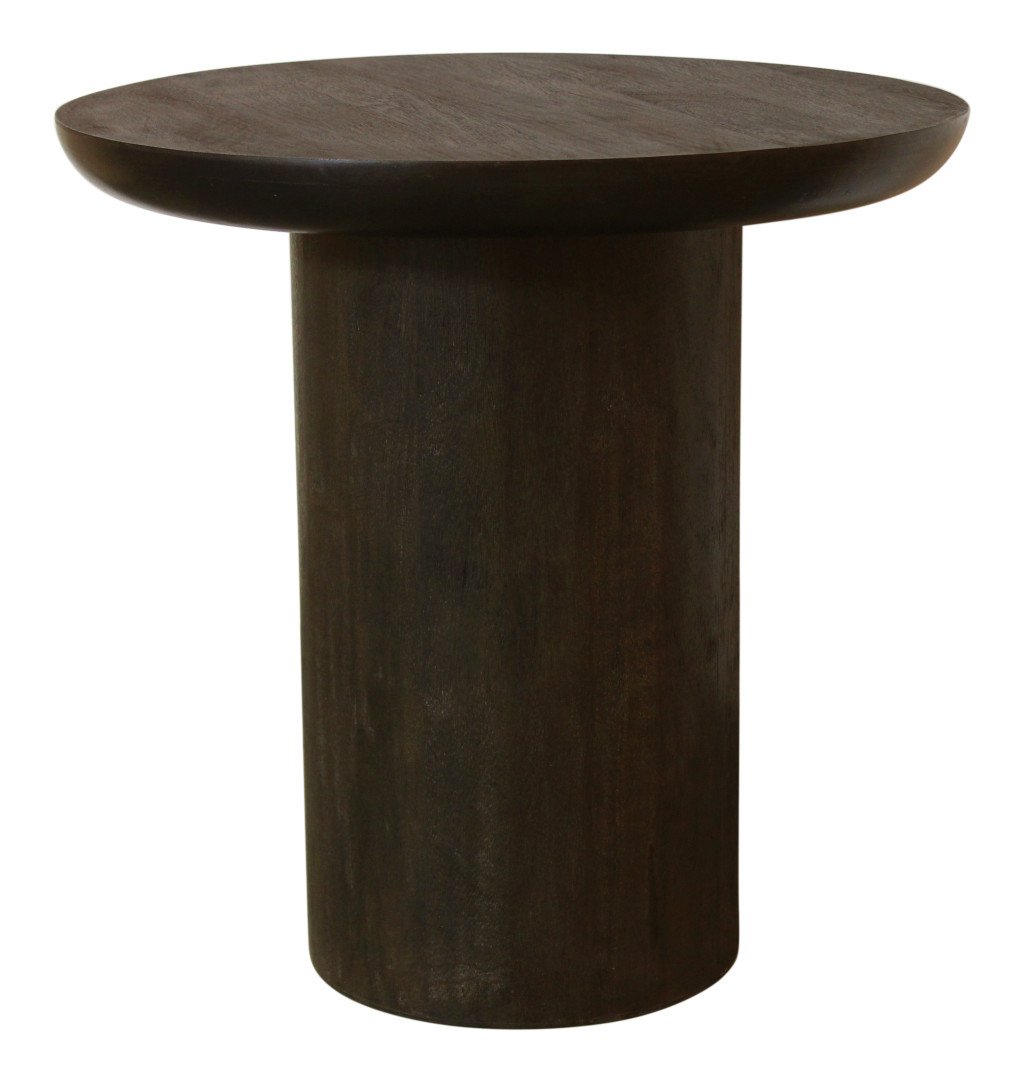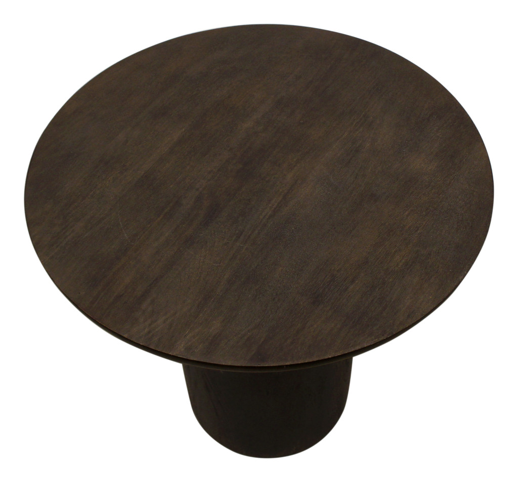 Show off your exquisite taste with this 24-inch dark brown distressed solid wood round pedestal end table. This table is made from solid wood in a dark brown color throughout the base and top. The purposefully distressed finish gives this table an authentically rustic feel. Side tables are a great way to flank your sofa, use as an accent next to your favorite chair, or can even be used bedside. You can match it with other pieces to get the ideal look for your place. 24-inch h x 24-inch w x 24-inch d.
