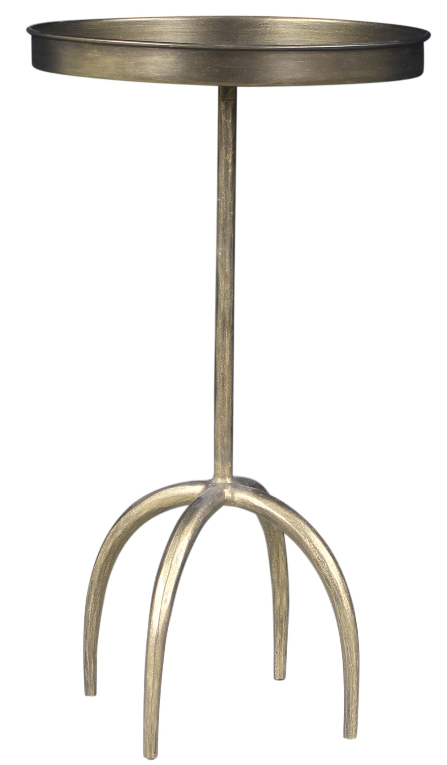 iron round pedestal end table, brass distressed iron round pedestal, round pedestal end table, distressed iron round pedestal end, 23" brass distressed iron round |
