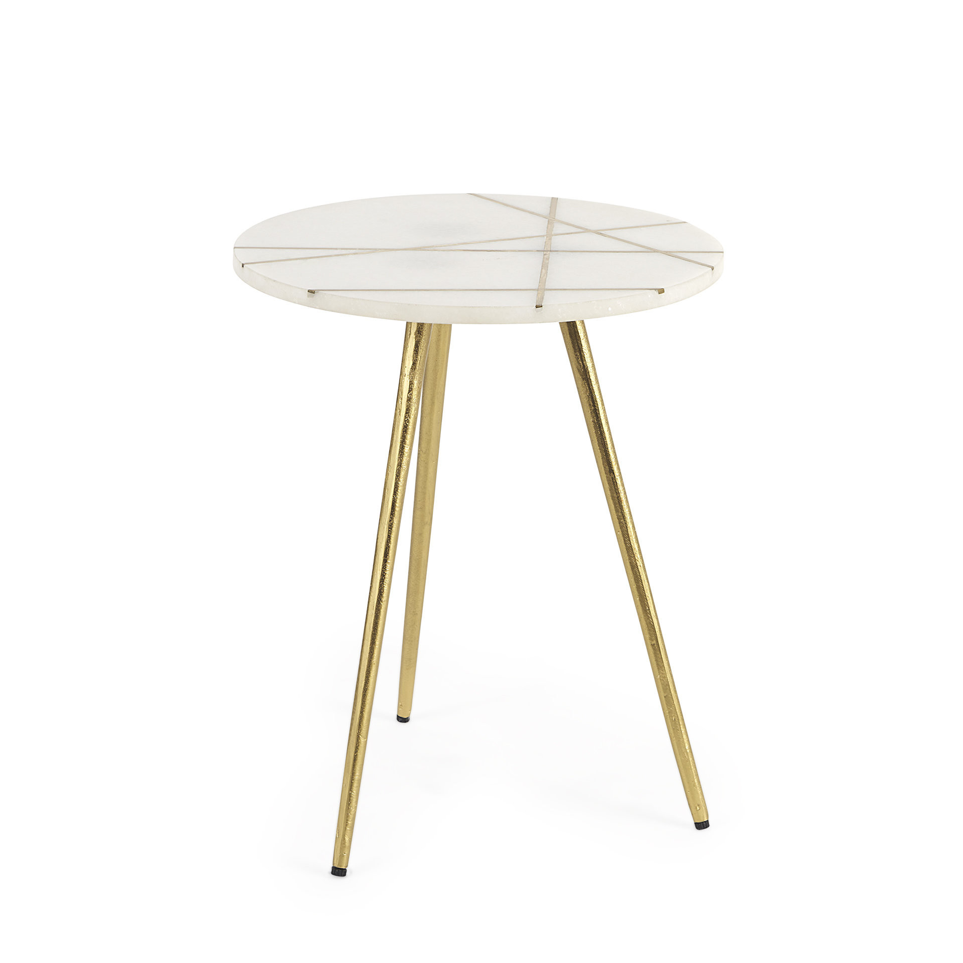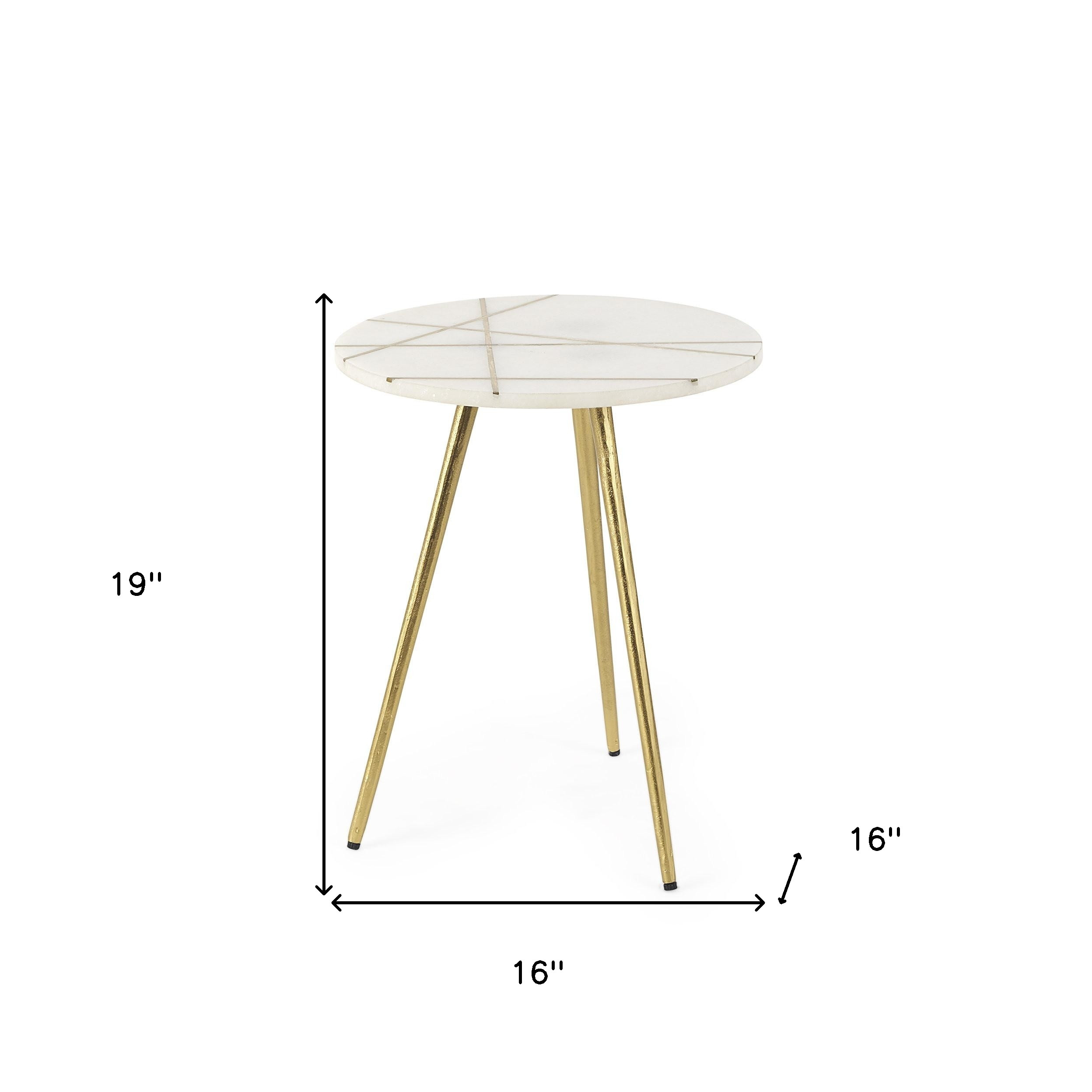 The 16-inch white and gold stone and metal tray table offers a chic and versatile addition to your living space. Crafted with a sleek gold metal base, it exudes a modern aesthetic that complements a variety of decor styles. The elegant white stone top provides a durable and stylish surface for drinks, snacks, or decorative items. This tray table is ideal for both practical use and as a statement piece in your home. Its compact size makes it easy to move around, ensuring it fits seamlessly into any room. Elevate your interior with this eye-catching piece that enhances both functionality and design. Perfect for entertaining or simply showcasing your favorite decor items, this tray table is a must-have. 19.00-inch h x 16.00-inch w x 16.00-inch d.