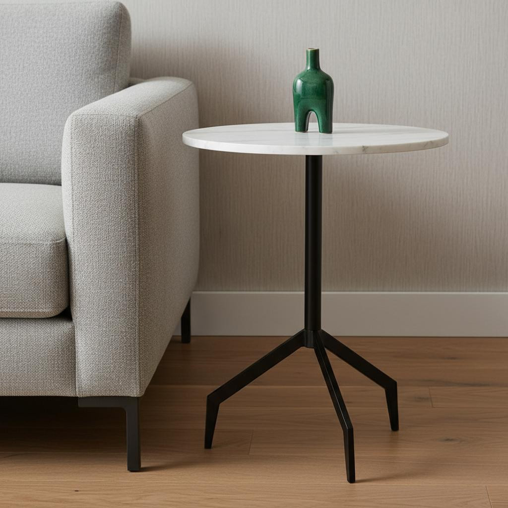 The 23-inch white and black stone and metal tray table is a stylish addition to any living space. Crafted with a sleek metal base, this table combines durability with contemporary aesthetics. Its elegant stone top in a pristine white color offers a striking contrast to the bold black base, enhancing the modern style of your decor. This versatile tray table is perfect for serving snacks, drinks, or displaying decorative items. Its design not only adds functionality but also elevates the overall ambiance of your home. Easy to move around, it adapts effortlessly to various settings, making it an essential piece for entertaining or daily use. Enjoy the blend of form and function that this tray table brings to your environment. 20.00-inch h x 22.50-inch w x 20.00-inch d.