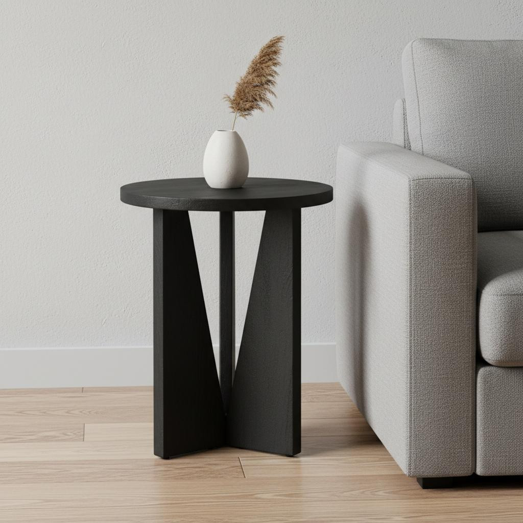 The 18-inch black solid wood and wood tray table offers a sleek addition to your living space. Crafted from solid wood, this tray table combines durability with elegance. The modern style enhances any decor, making it a versatile choice for various settings. Featuring a striking black color, both the top and base exude sophistication and charm. Perfect for serving drinks or displaying decorative items, this table is functional and aesthetically pleasing. Its compact size allows for easy placement in small areas while still making a bold statement. Enhance your home with this stylish tray table that embodies both form and function for everyday use. 22.50-inch h x 18.00-inch w x 18.00-inch d.