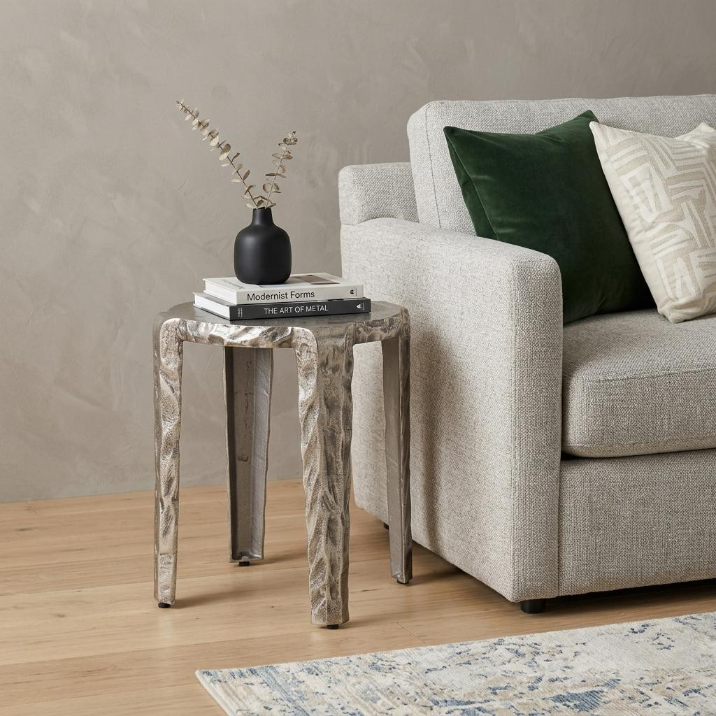 distressed aluminum round end table, aluminum round end table, 21" silver distressed aluminum round, silver distressed aluminum round end, 21" silver distressed aluminum |