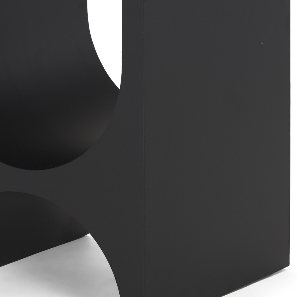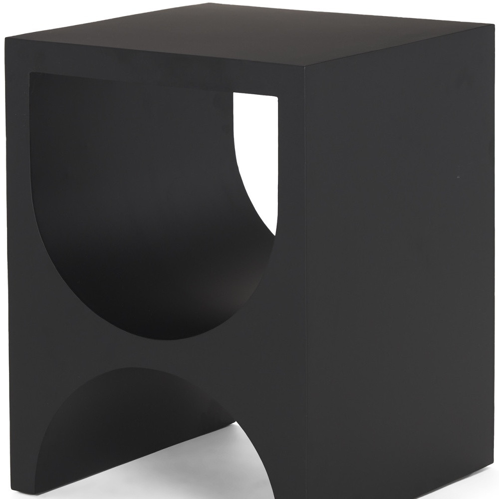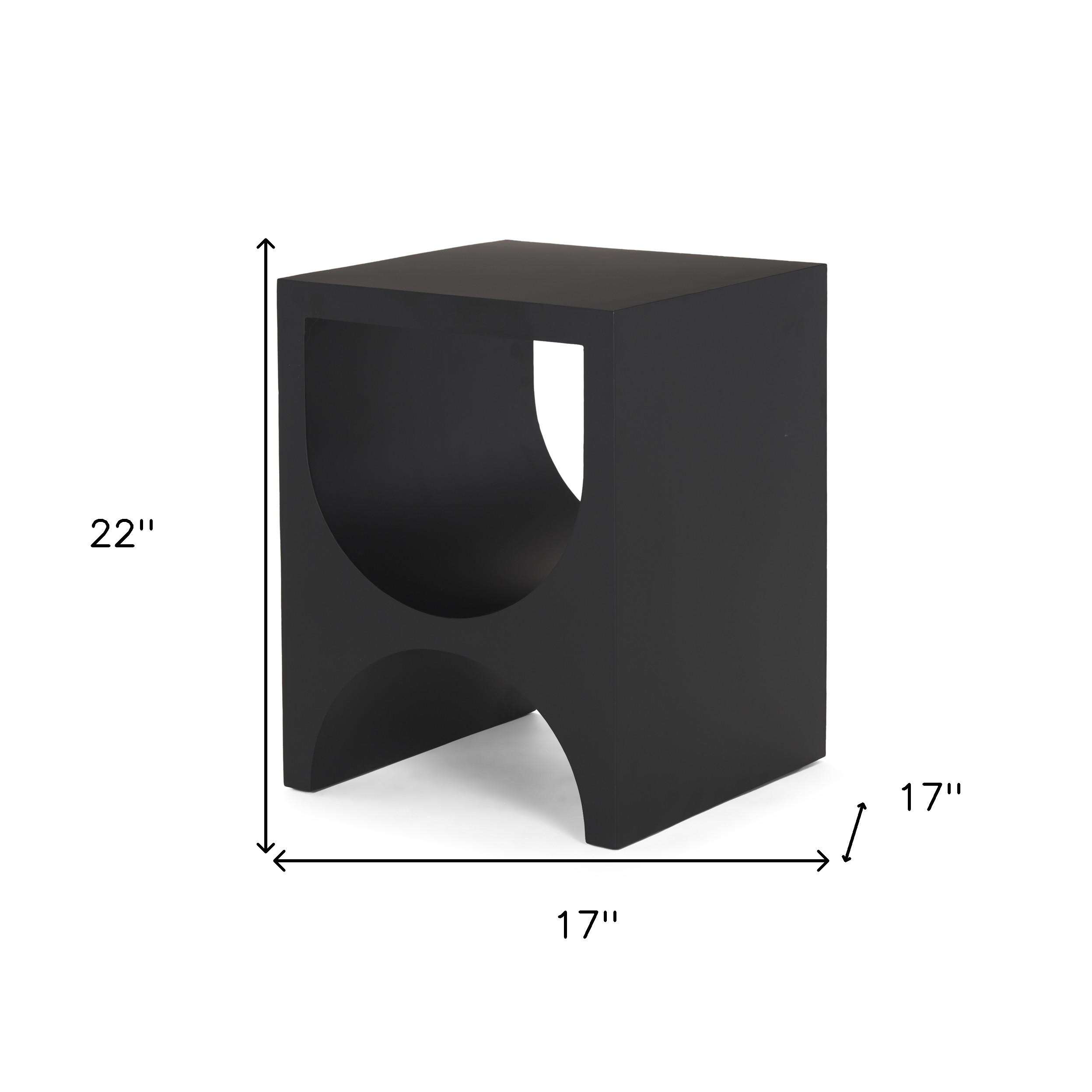 Distinctive in style the 22-inch black iron square sled end table radiates a versatile charm. This table features quality construction from iron and an updated monotone color scheme with black as the main color on both the top and the base. An ideal location for placing your snacks and drinks, and a place to keep your lamp, frames, or other accessories. You can match it with other pieces to get the ideal look for your place. 22.00-inch h x 17.00-inch w x 17.00-inch d.