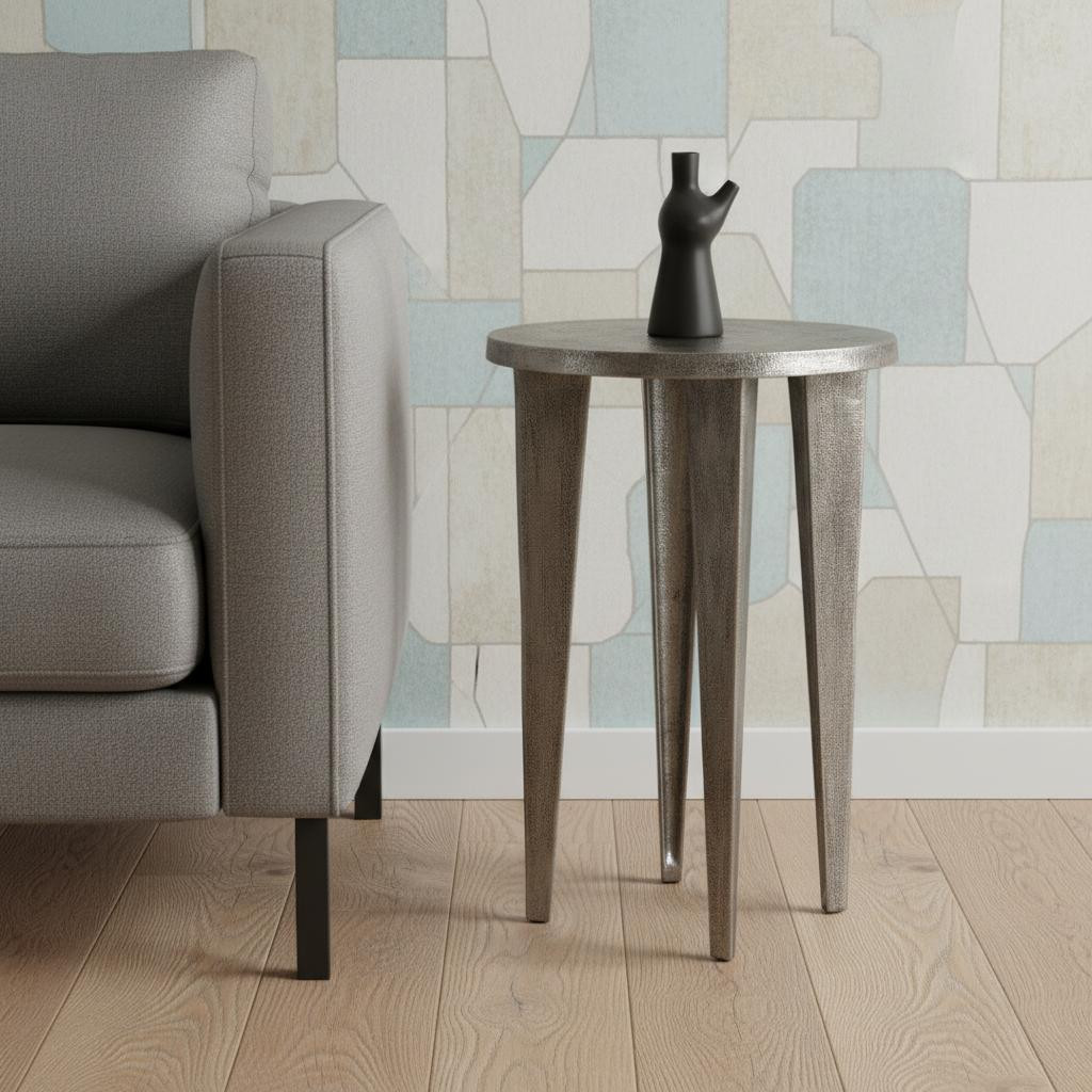 distressed aluminum round end table, aluminum round end table, 21" silver distressed aluminum round, silver distressed aluminum round end, 21" silver distressed aluminum |