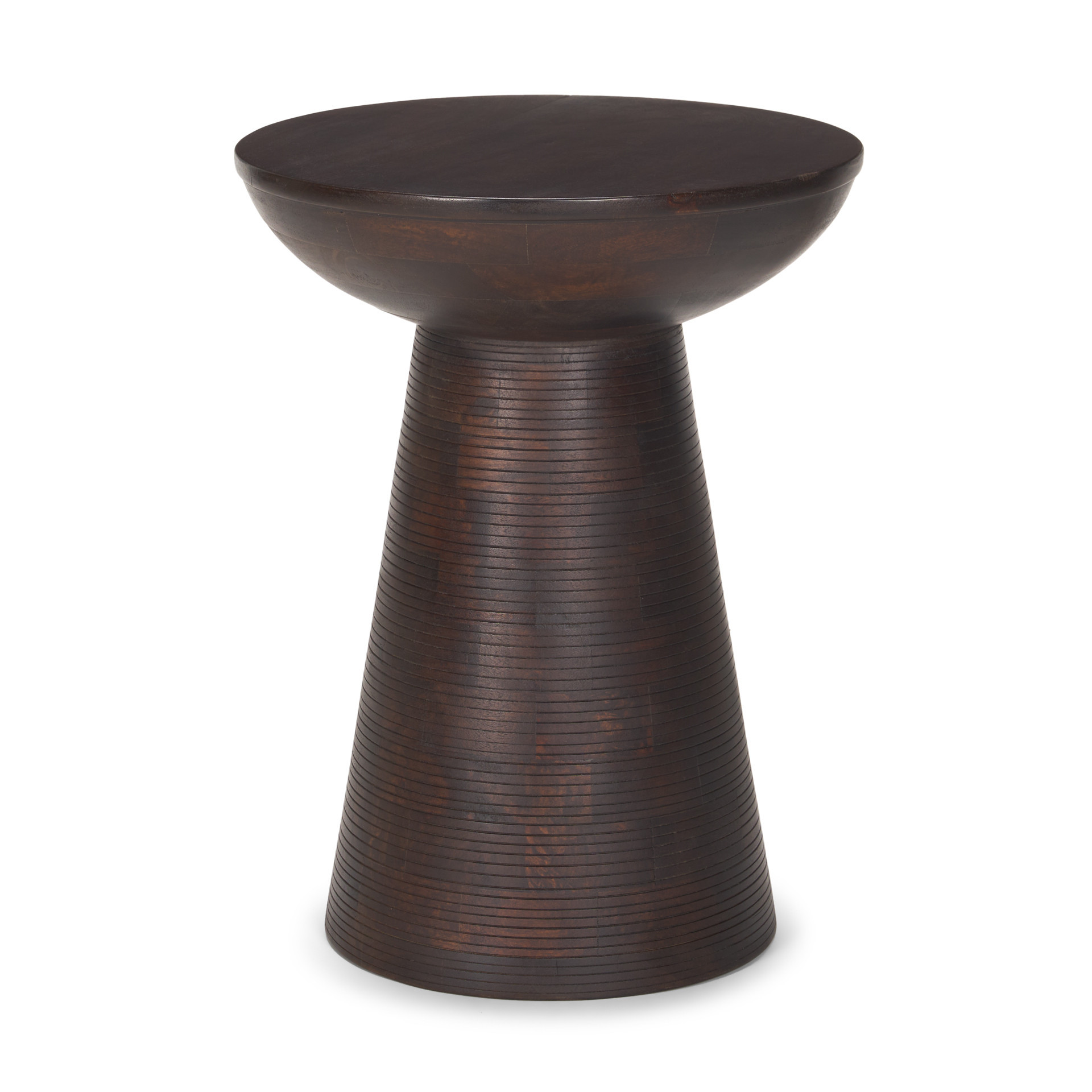 Optimize your space and add some charm to your room with the 21-inch redwood solid wood round pedestal end table. This table features quality construction from solid wood and an updated monotone color scheme with redwood as the main color on both the top and the base. Side tables are a great way to flank your sofa, use as an accent next to your favorite chair, or can even be used bedside. You can also use it as an entryway table to hold your keys. 21.00-inch h x 16.00-inch w x 16.00-inch d.