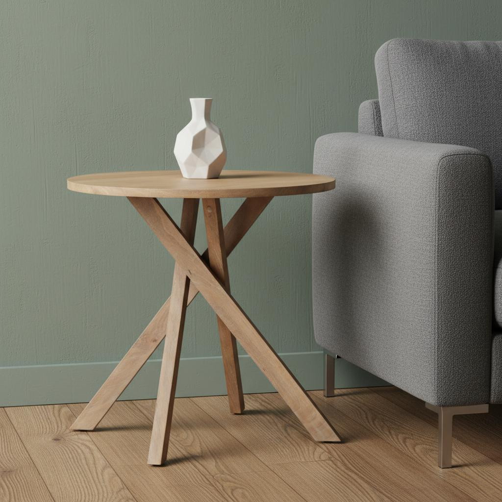 round cross legs end table, cross legs end table, legs end table, solid wood round cross legs, 30" natural distressed solid wood |