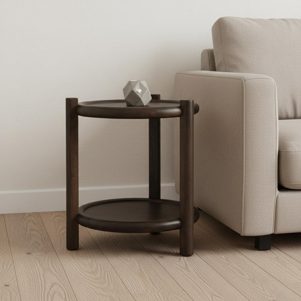 The 24-inch dark brown solid wood tray table is a versatile addition to your home. Crafted from solid wood, both the top and base feature a rich dark brown finish that complements any modern decor. This tray table includes a removable serving tray, making entertaining effortless. The included storage stand adds practicality, allowing you to keep your space organized while enhancing its aesthetic appeal. With its stylish design and functional features, this tray table is perfect for serving snacks or drinks in style. Its durable construction ensures longevity, making it an excellent choice for everyday use or special occasions. Elevate your living space with this chic and functional piece that blends seamlessly into your home decor. 26.00-inch h x 23.50-inch w x 23.50-inch d.