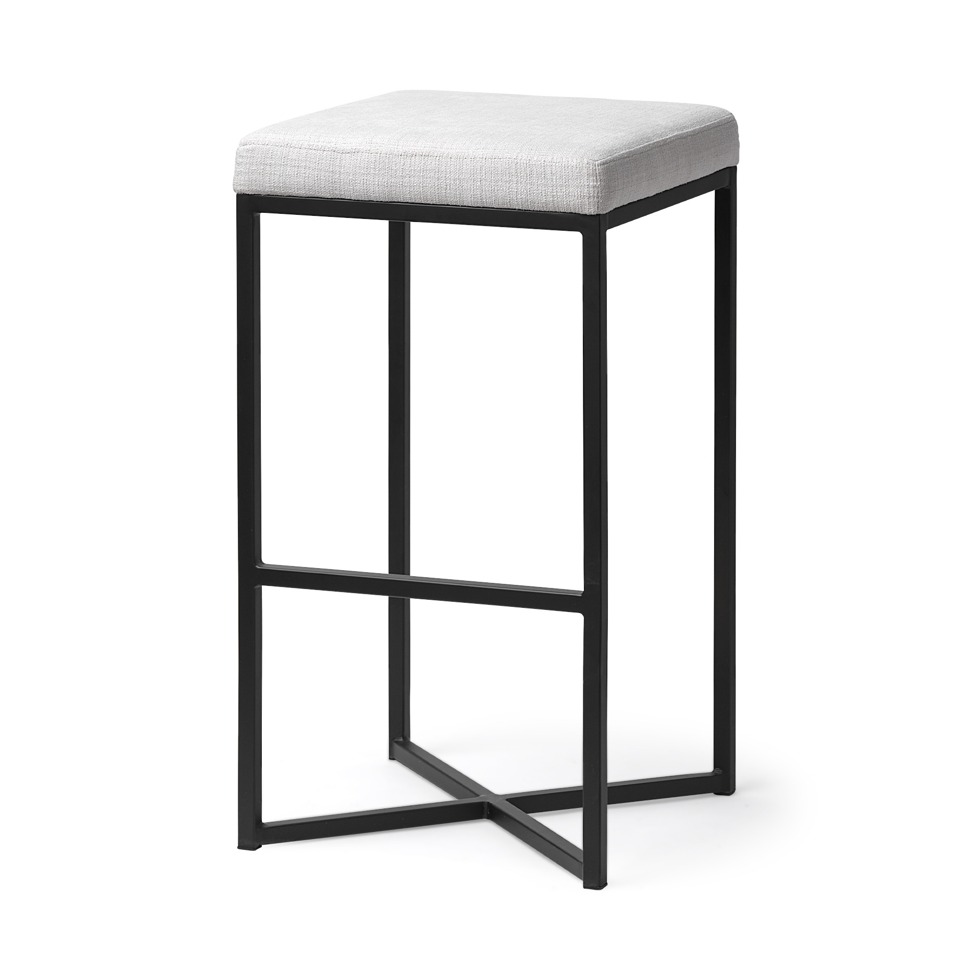 With this 30-inch white and black iron and fabric backless bar height bar chair you can add design and extra seating to your space. Quality construction from black iron combines with white upholstered to give this stool a fresh and updated look. The square shape of the seat give this backless chair a fresh and fashionable look. The square shape of the seat combines with a backless to give this chair a comfortable and fashionable look. 26.38-inch h x 16.54-inch w x 16.54-inch d.