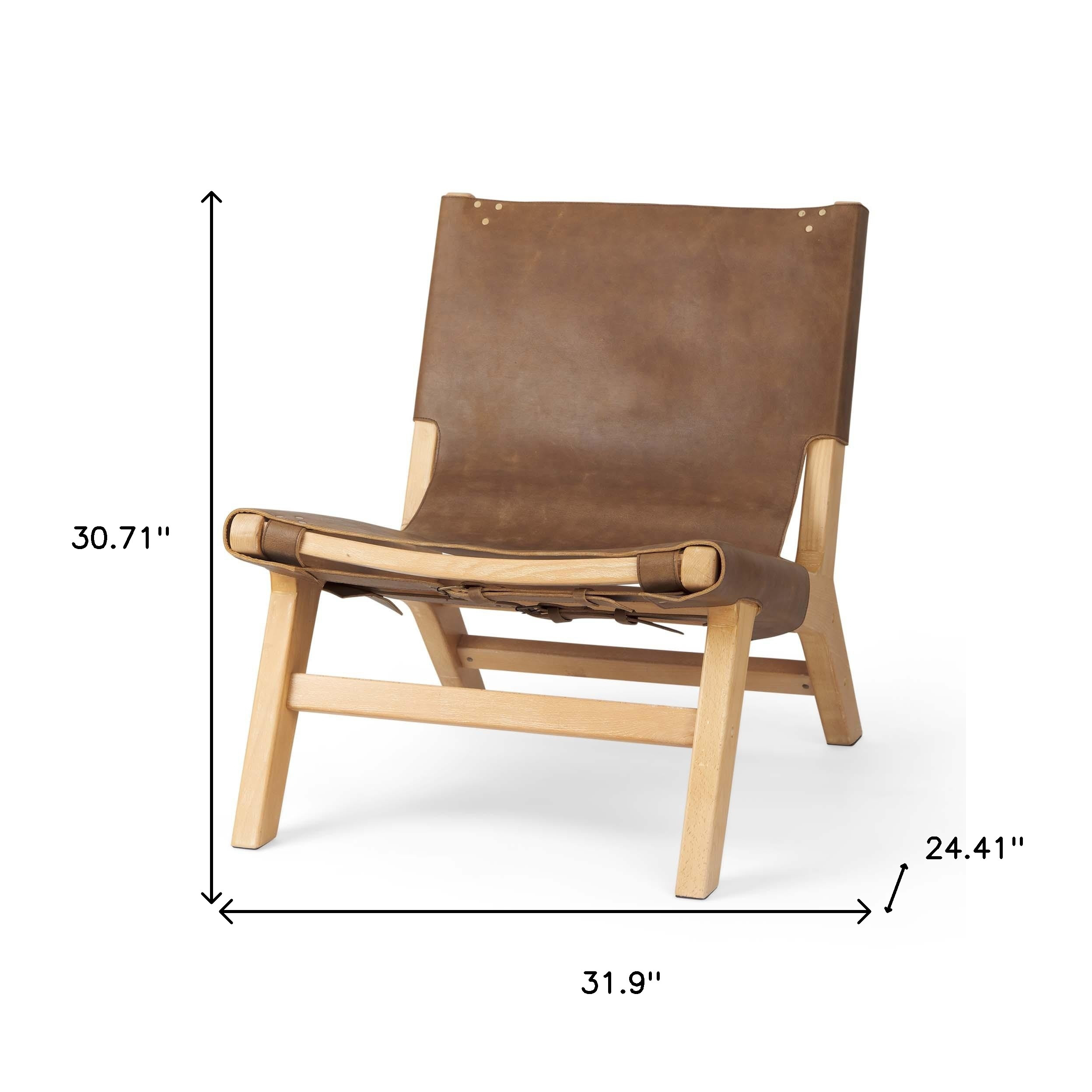 This 32-inch brown and natural genuine leather and solid wood slipper chair will add a beautiful decorative accent to your decor. This sturdy genuine leather slipper chair comes in brown to give your space just the right look. The sturdy inner frame is built with high quality solid wood, featuring a fixed back that is accented with soft and comfortable cushioning. 30.71-inch h x 31.90-inch w x 24.41-inch d.