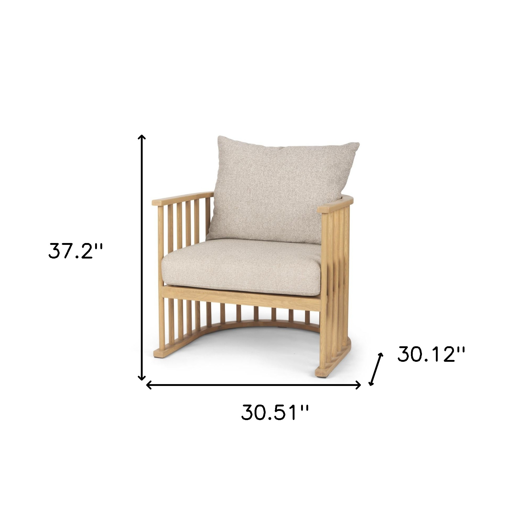 Give your living room, bedroom, or office a facelift with this beautifully crafted 31-inch beige and natural upholstery and solid wood barrel chair. This sturdy polyester barrel chair comes in beige to give your space just the right look. The high quality solid wood inner frame flaunts convenient armrests and a pillow back that are complimented by soft and comfortable cushioning. 37.20-inch h x 30.51-inch w x 30.12-inch d.