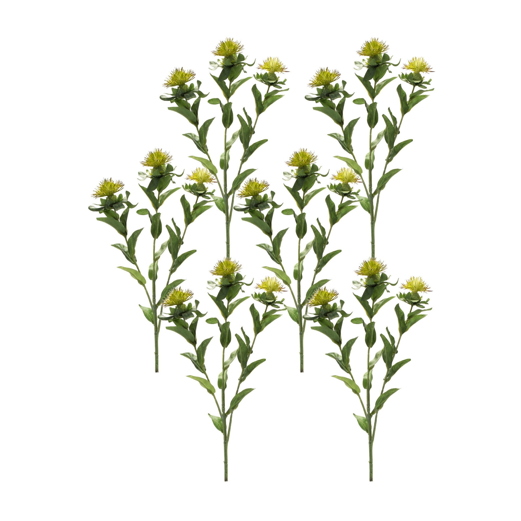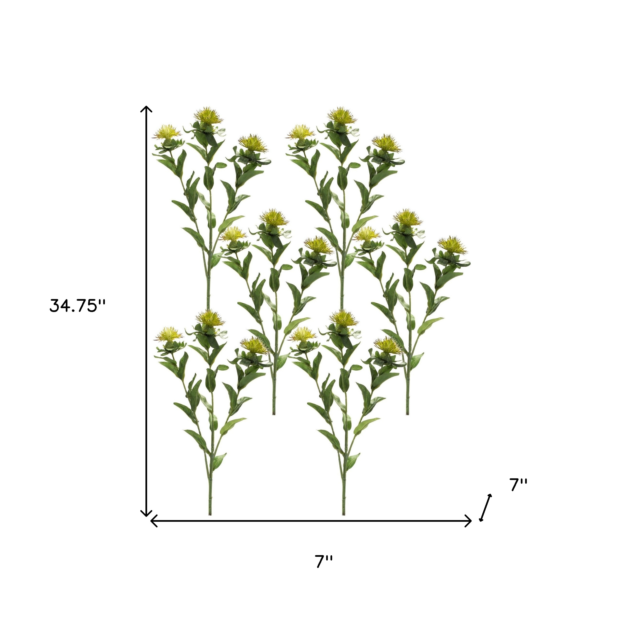 The set of six 7-inch green artificial plants brings a touch of nature to your space. Designed for tabletop placement, these vibrant green plants add a refreshing accent to any room. Crafted from durable polyester, they are perfect for those who appreciate the beauty of greenery without the upkeep. Each plant in this set is unique, lending an organic feel to your decor. With six individual pieces, you can create an aesthetically pleasing arrangement or scatter them throughout your home for a cohesive look. Perfect for year-round decor, these artificial plants ensure your space remains lively and inviting. Enjoy the beauty of nature indoors with this charming set. 34.75-inch h x 7.00-inch w x 7.00-inch d.