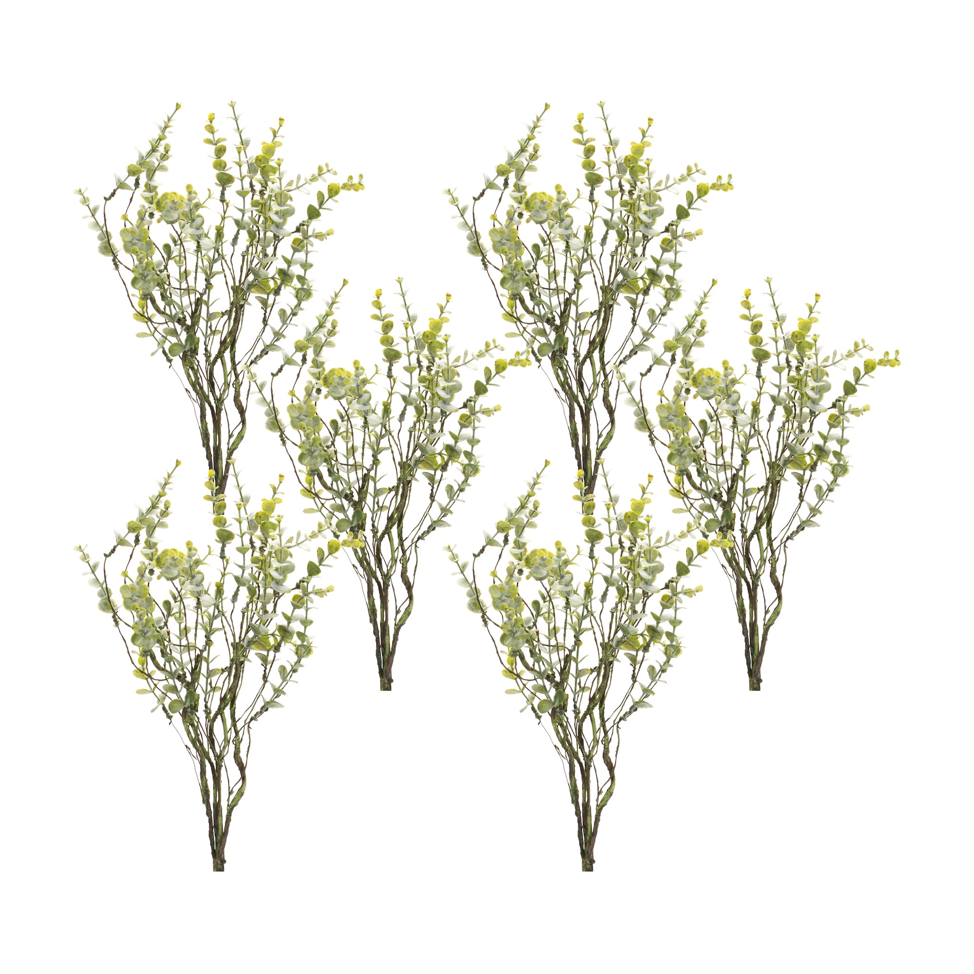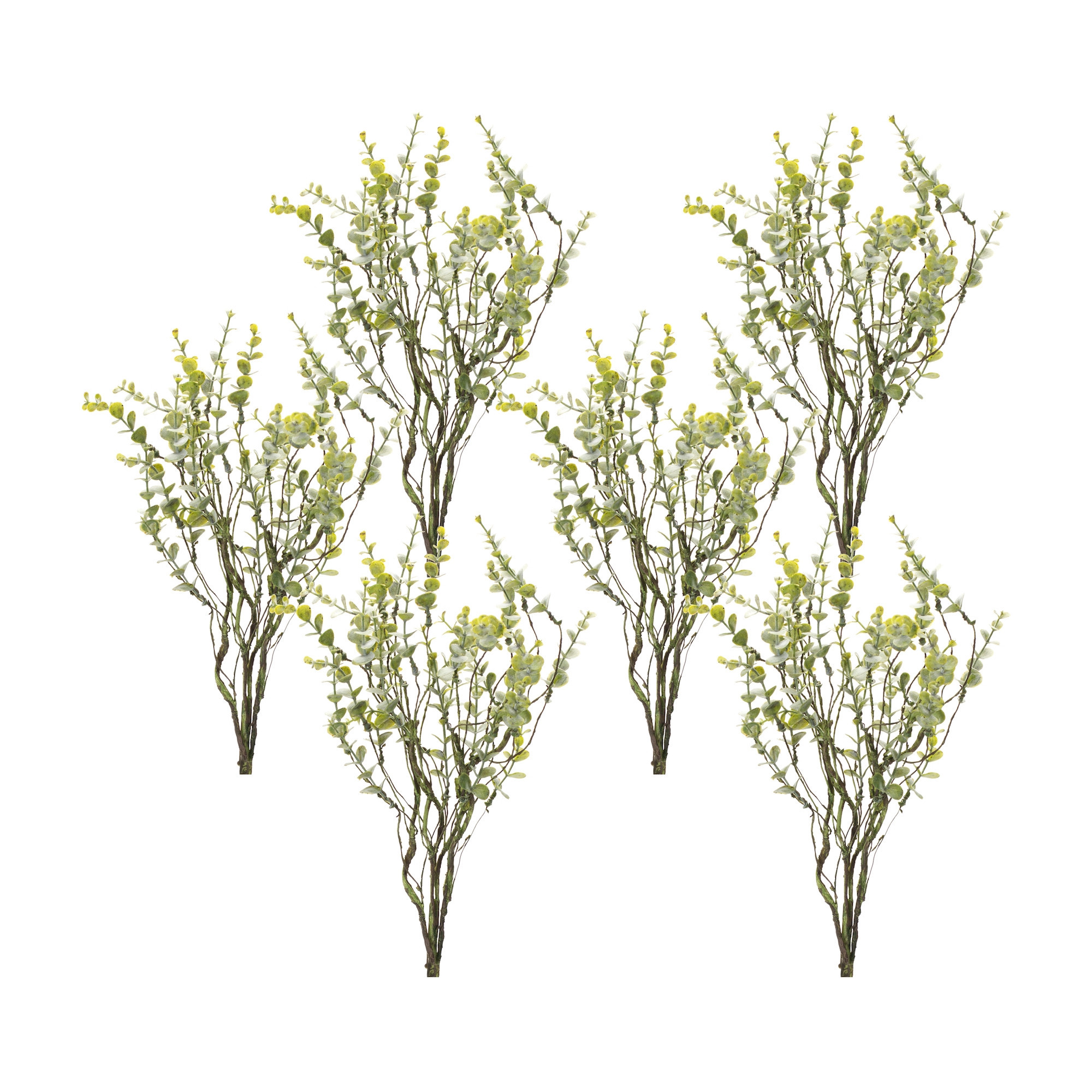 The set of six 18-inch green boxwood artificial plant offers a vibrant touch to your decor. Perfect for tabletop placement, these plants are designed to enhance any room with their lush greenery. Crafted from durable plastic, they boast a traditional style that complements various interior designs. Each of the six boxwood plants adds a sense of elegance without the maintenance of real foliage. Their rich green color ensures they stand out while bringing a calming atmosphere to your space. Ideal for creating inviting centerpieces or accentuating shelves, these artificial plants are a versatile choice for both homes and offices. Enjoy the beauty of nature indoors with this stunning set that remains fresh and vibrant year-round. 18-inch h x 5.25-inch w x 7-inch d.