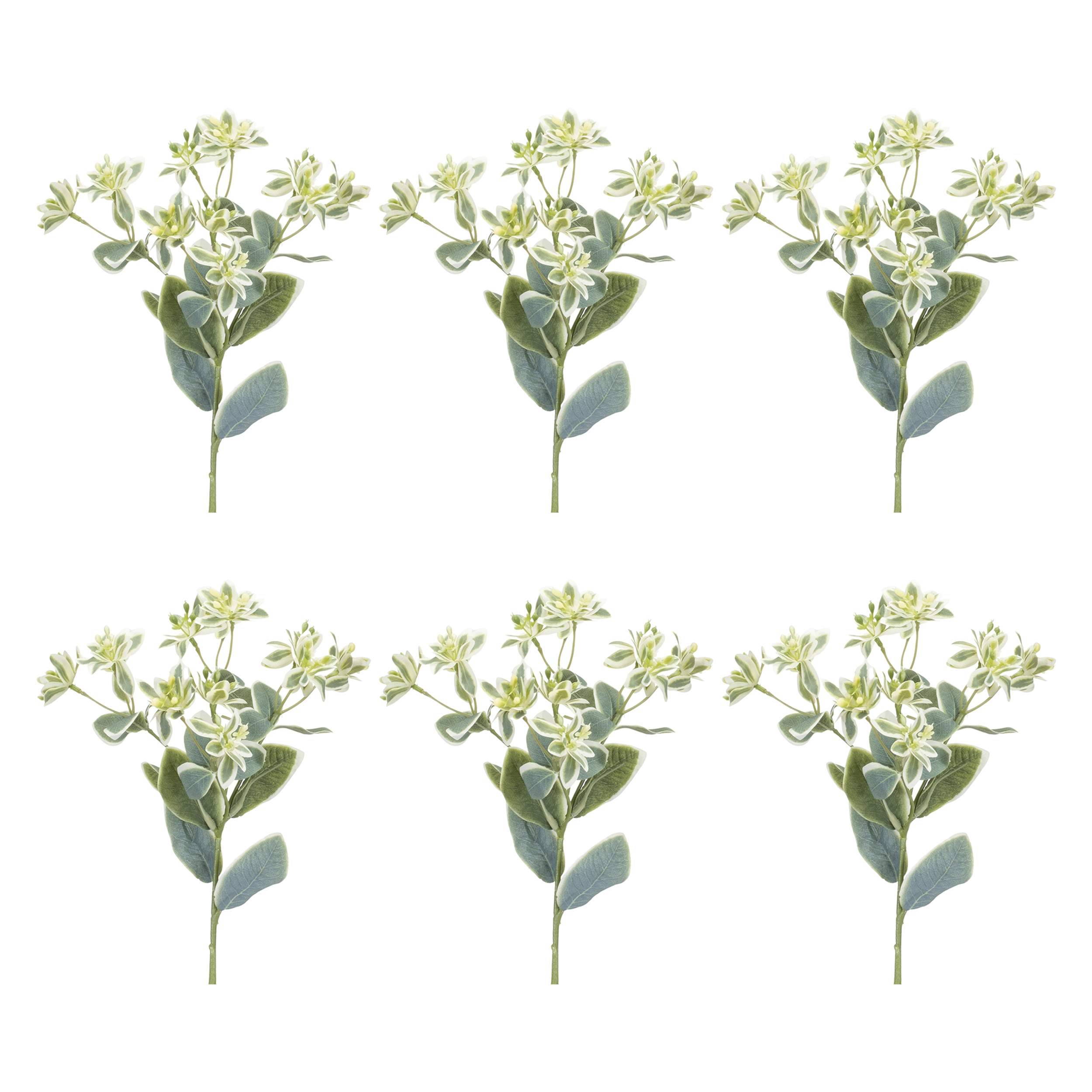 The set of six 5-inch green artificial features a collection of vibrant greenery perfect for enhancing your home decor. These artificial plants are designed to bring a touch of nature indoors without the upkeep of real plants. Ideal for tabletop placement, they can easily fit into any space while adding freshness to your environment. Crafted from durable polyester, these plants are built to last and maintain their lush appearance over time. Each piece showcases a rich green color, making it a versatile addition to various interior styles. With six individual plants included, you can create your own arrangements or scatter them throughout your home for a cohesive look. Enjoy the beauty of nature with this low-maintenance solution for your decor needs. 18.50-inch h x 4.50-inch w x 7.50-inch d.