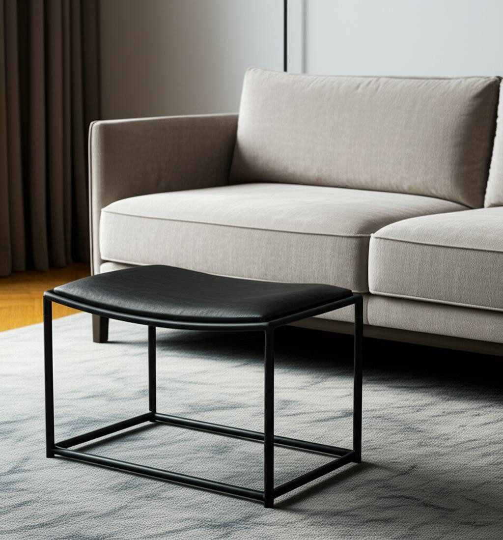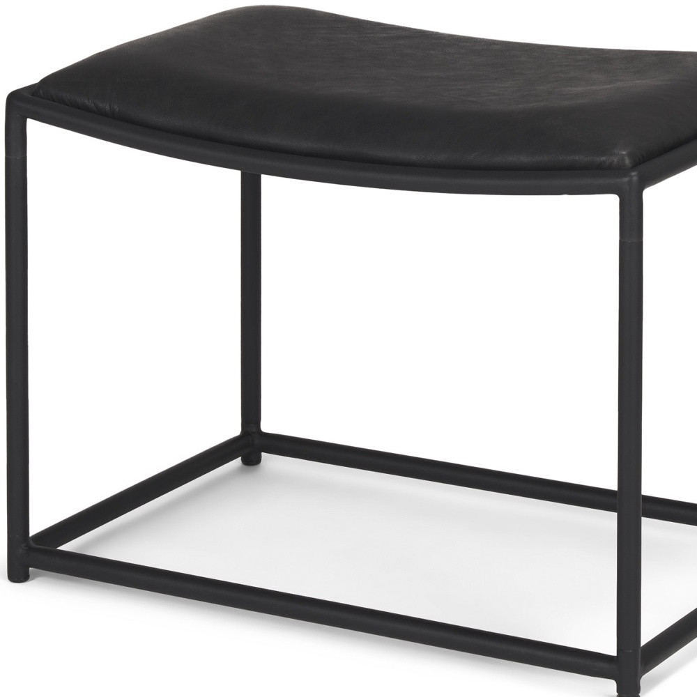 16" black genuine leather footstool, black genuine leather footstool, genuine leather footstool, 16" black genuine leather, black genuine leather |