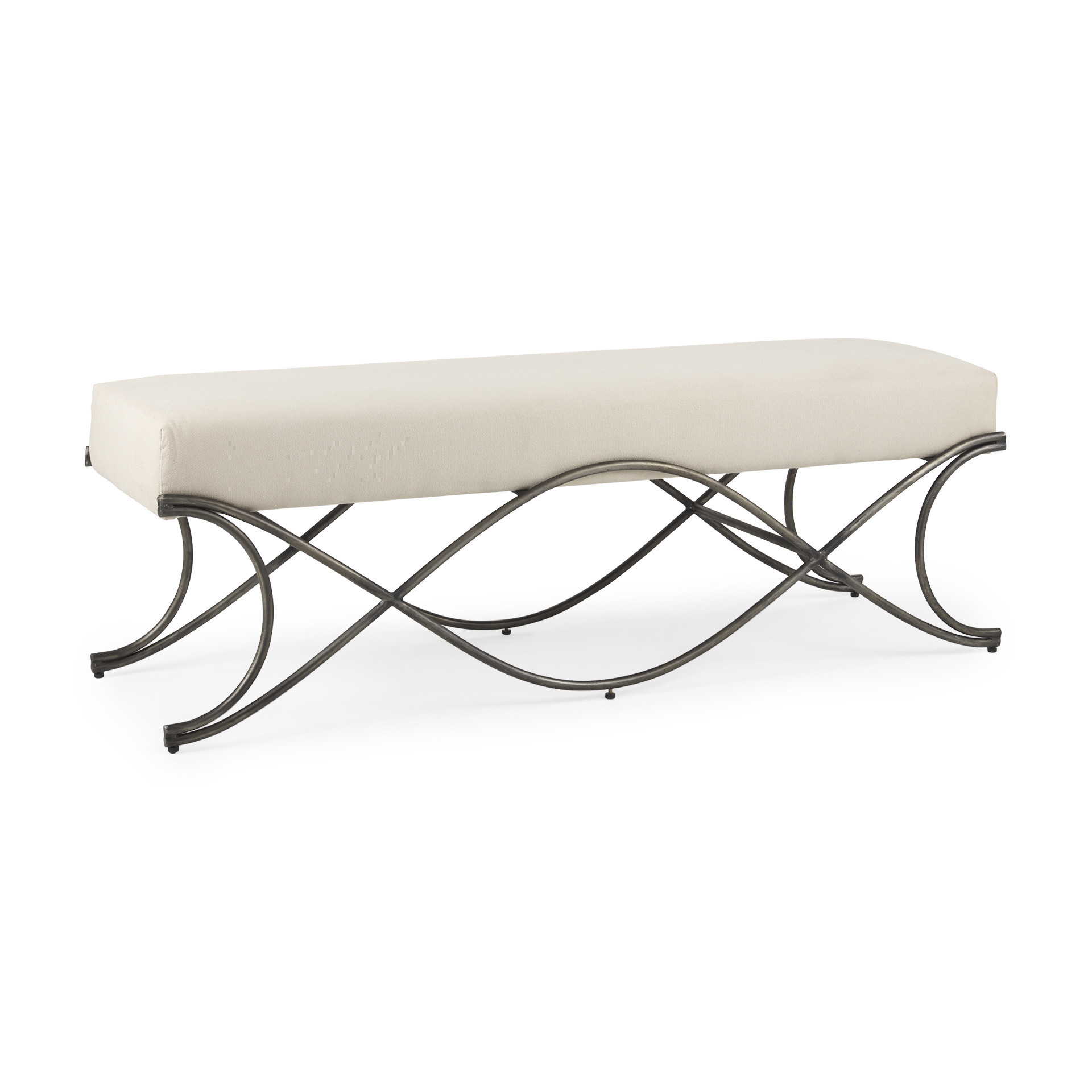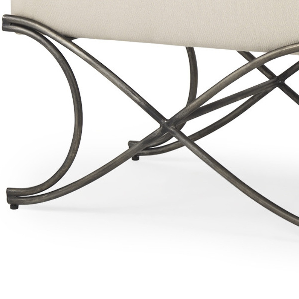 nickel fabric metal upholstered bench, fabric metal upholstered bench, metal upholstered bench, 55" cream nickel fabric, cream nickel fabric metal upholstered |