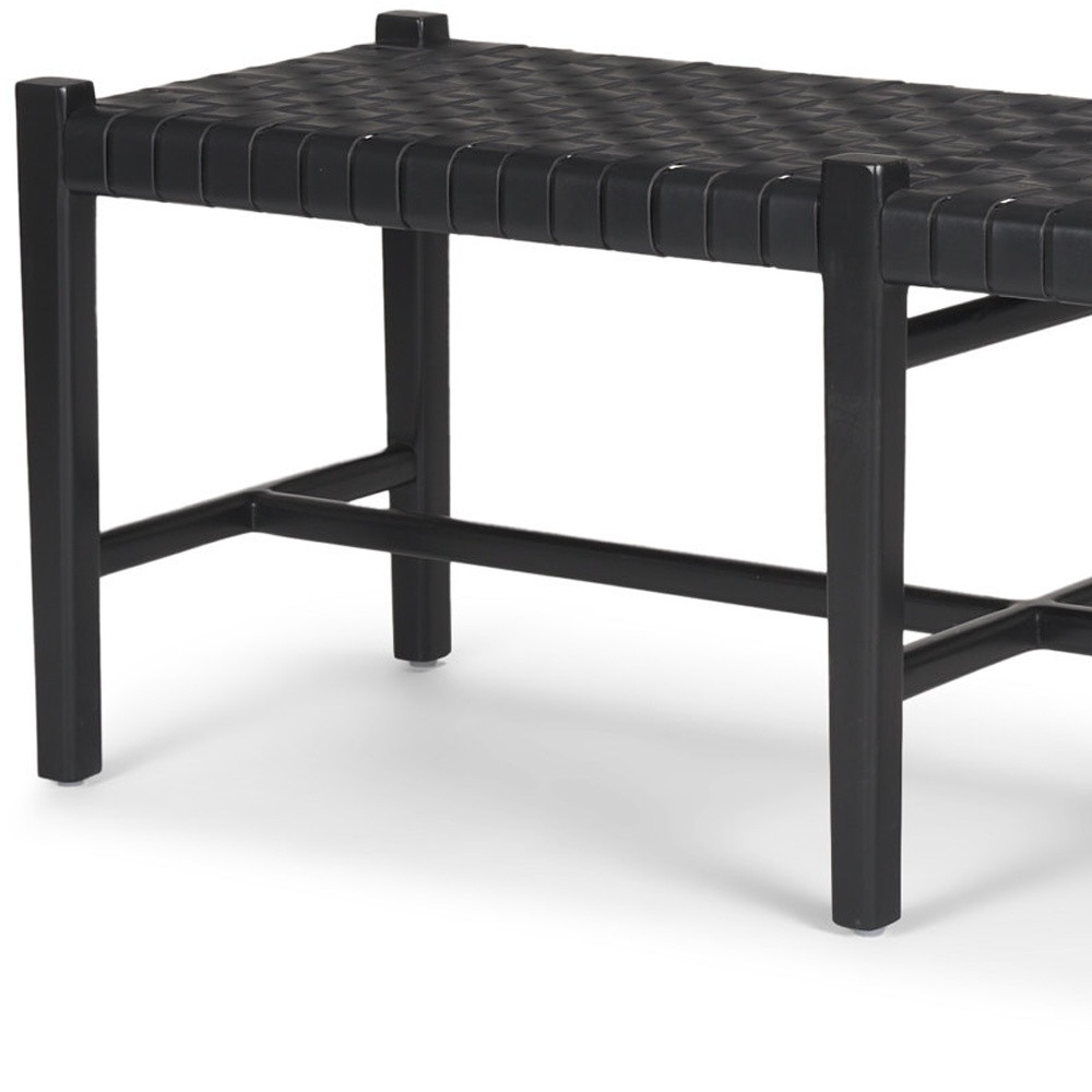 Add a good looking decorative accent to your space that is also practical for seating. A solid black solid wood frame is finished off with a matching black upholstery seat, giving this bench a chic monotone look. Expertly upholstered with padding in a soft solid color genuine leather, this bench is as comfortable as it is good looking. Ideal for entrance foyer, hallway, or laundry room. This bench is a great place store your keys, put on your shoes, or be a catchall on your way in or out. Easy to blend into most any room, a bench is a way to add a good looking accent to your space that can also be practical and useful. 18.75-inch h x 52-inch w x 16.5-inch d.