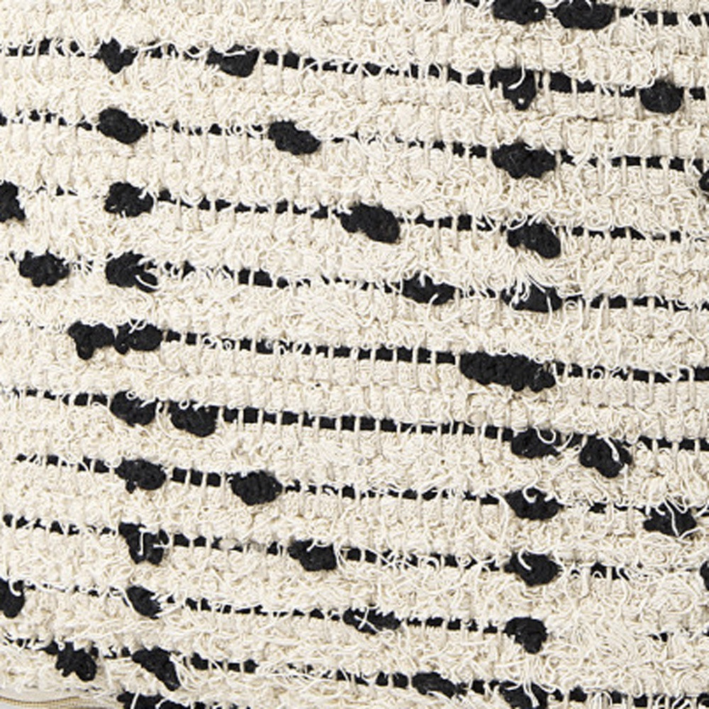 Add a good looking decorative accent to your space that is also practical for seating. Add chic style to your space with this fun pouf that not only looks cool but can be a great foot rest or extra seat when needed. Expertly woven with super soft and durable 100% cotton, in a textural geometric and striped pattern, this ottoman is as comfortable as it is good looking. Ottomans are multi-functional additions to your space that add fashion and practical value. 16.00-inch h x 16.00-inch w x 16.00-inch d.