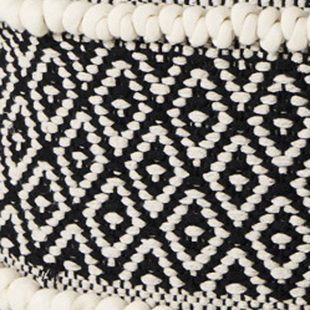 Practicality and fashion mix together with this handy 16-inch black gray and white cotton geometric pouf ottoman. Add chic style to your space with this fun pouf that not only looks cool but can be a great foot rest or extra seat when needed. The upholstery top of this ottoman is a nice contrast to the upholstery material. Expertly woven from 100% cotton with texture with padding and soft cotton in a geometric pattern, this ottoman is as comfortable as it is good looking. Easy to blend into most any room, a ottoman is a way to add a good looking accent to your space that can also be practical and useful. 16.00-inch h x 16.00-inch w x 16.00-inch d.