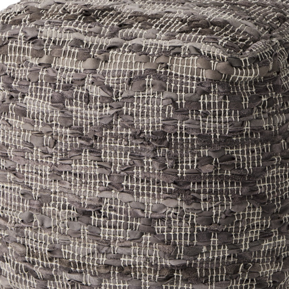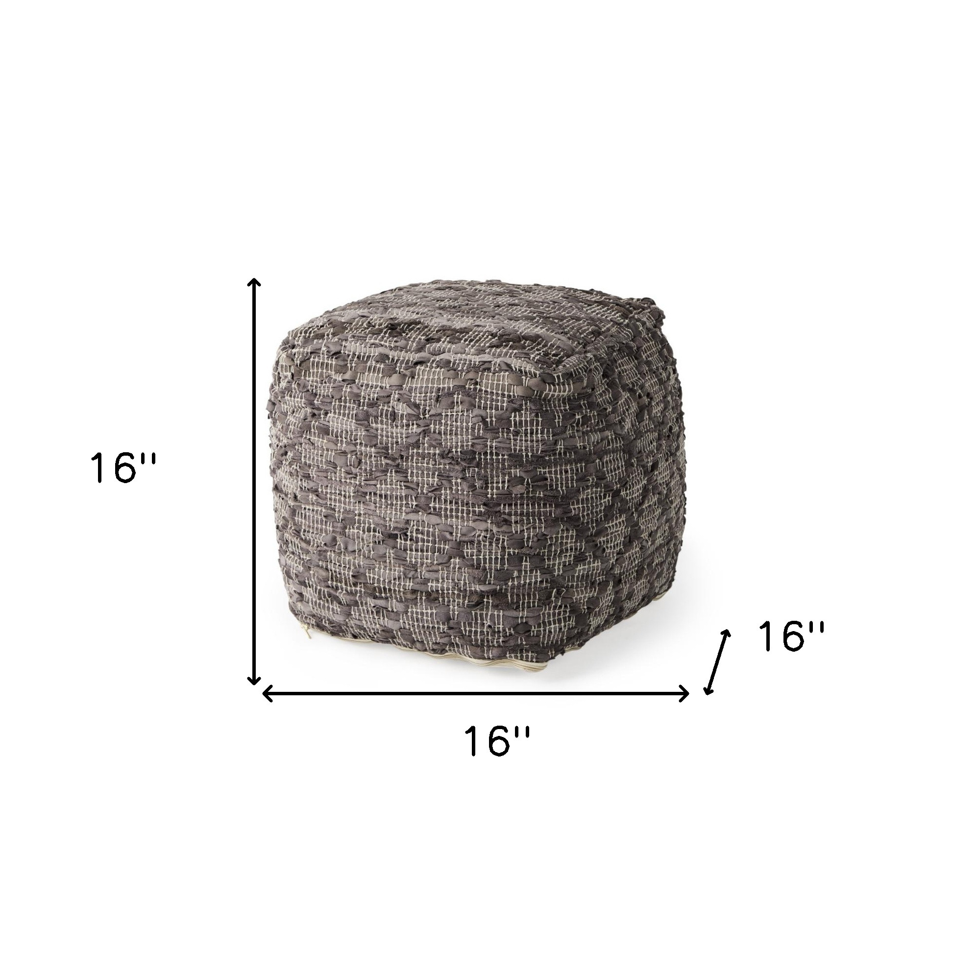 Add a good looking decorative accent to your space that is also practical for seating. Add chic style to your space with this fun pouf that not only looks cool but can be a great foot rest or extra seat when needed. Expertly woven with soft cotton and leather in a textural and multi-tonal geometric pattern, this ottoman is as comfortable as it is good looking. Easy to blend into most any room, a ottoman is a way to add a good looking accent to your space that can also be practical and useful. 16.00-inch h x 16.00-inch w x 16.00-inch d.