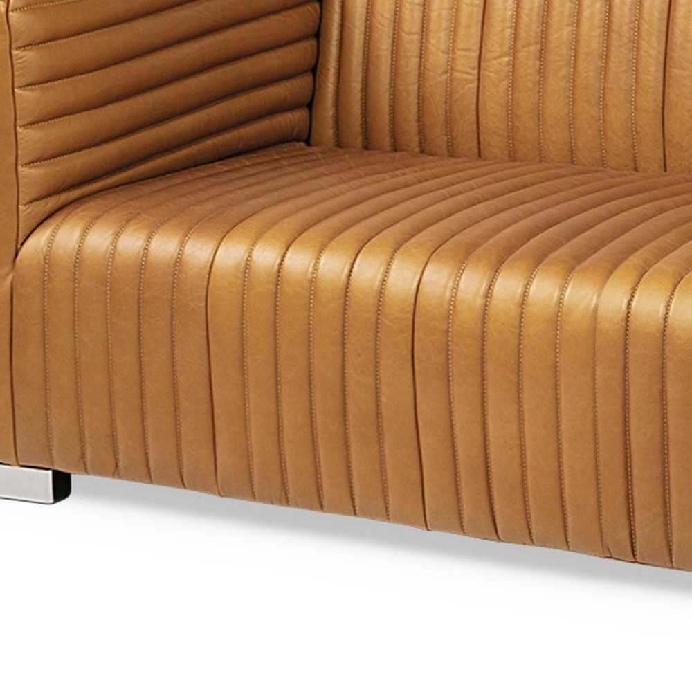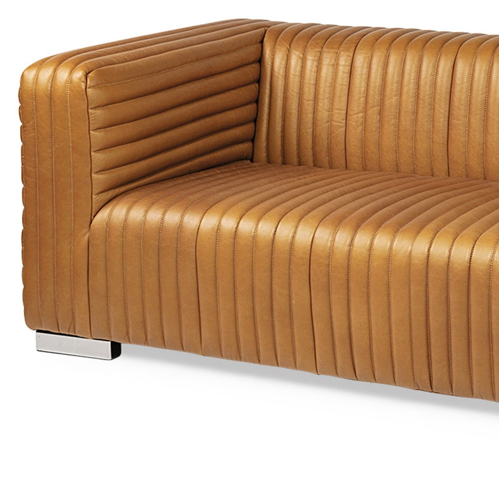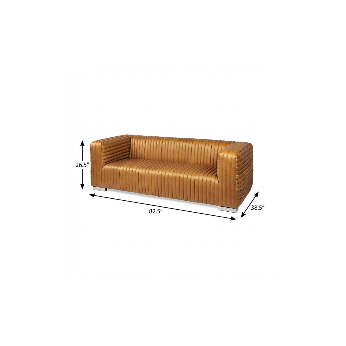 An interior designer's dream, this buttery soft high grade leather 83-inch brown leather solid wood sofa will bring just the right touch to your space. The premium leather used makes your lounging luxuriously comfortable and adds an elegant appeal to your space. Solid colors give you lots of decorative options and are easy to work into your decor scheme. Web suspension construction gives this piece strong support and makes it comfortable to sit even for long periods of time. Square arms offer a comfy place to rest. Silver metal legs effortlessly elevate the room and add a touch of contemporary design. A great showpiece for your room, this sofa is a must have. 26.50-inch h x 82.50-inch w x 38.50-inch d.