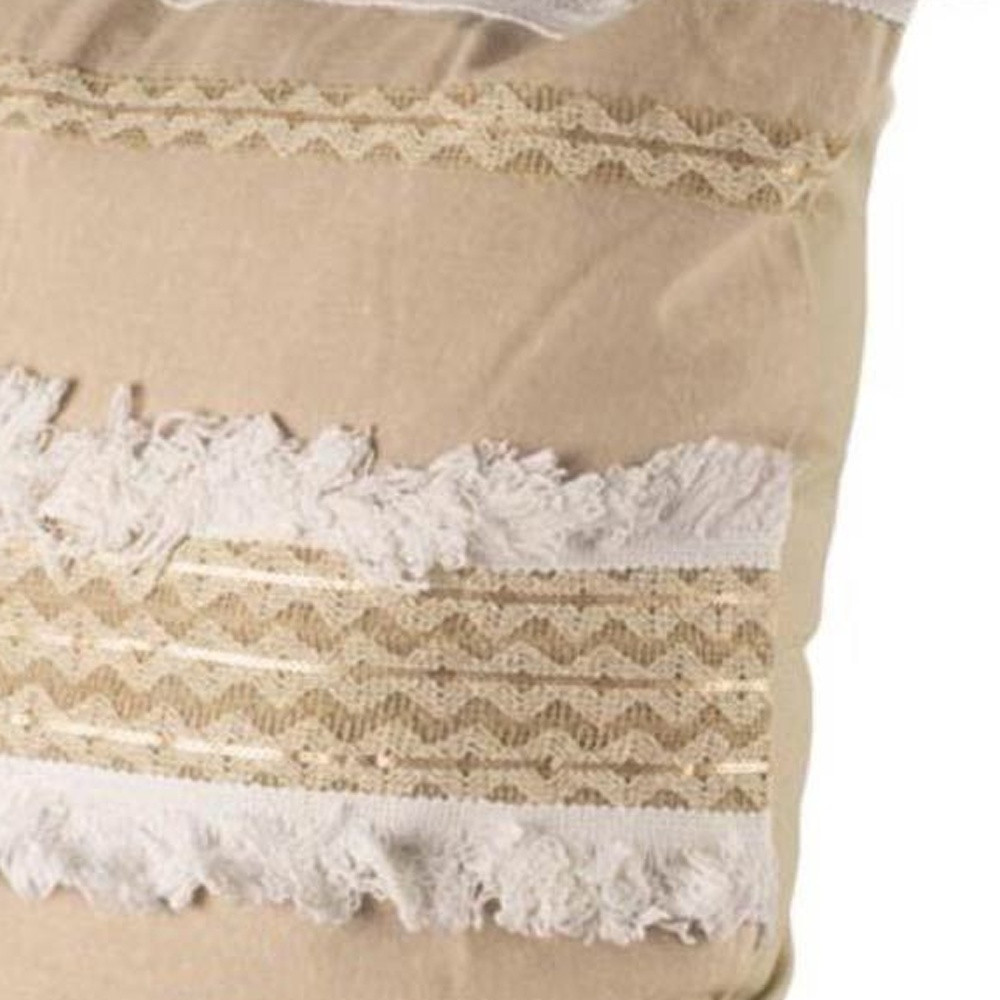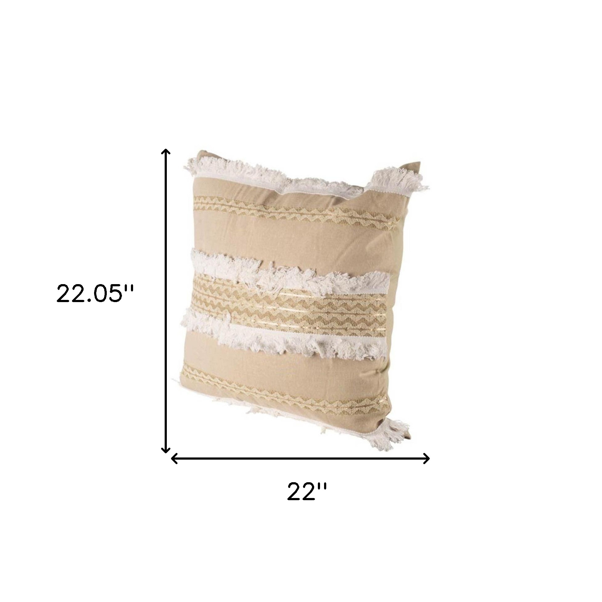 Add an air of fashion to your room and rejuvenate the space with this cute and fashionable 22-inch tan and white geometric linen throw pillow cover with fringe. This tan and white hued, accent pillow cover, represents quality construction, expertly made from durable linen that is not only long lasting but soft to the touch as well. Pillow covers are a good idea for anyone that loves to decorate or accent their space with color and texture. Combine with your own fill or insert to add decoration and dimension to your favorite chair, accent your sofa, or to use as part of your bed ensemble. 22.00-inch h x 22.00-inch w x 1.57-inch d.
