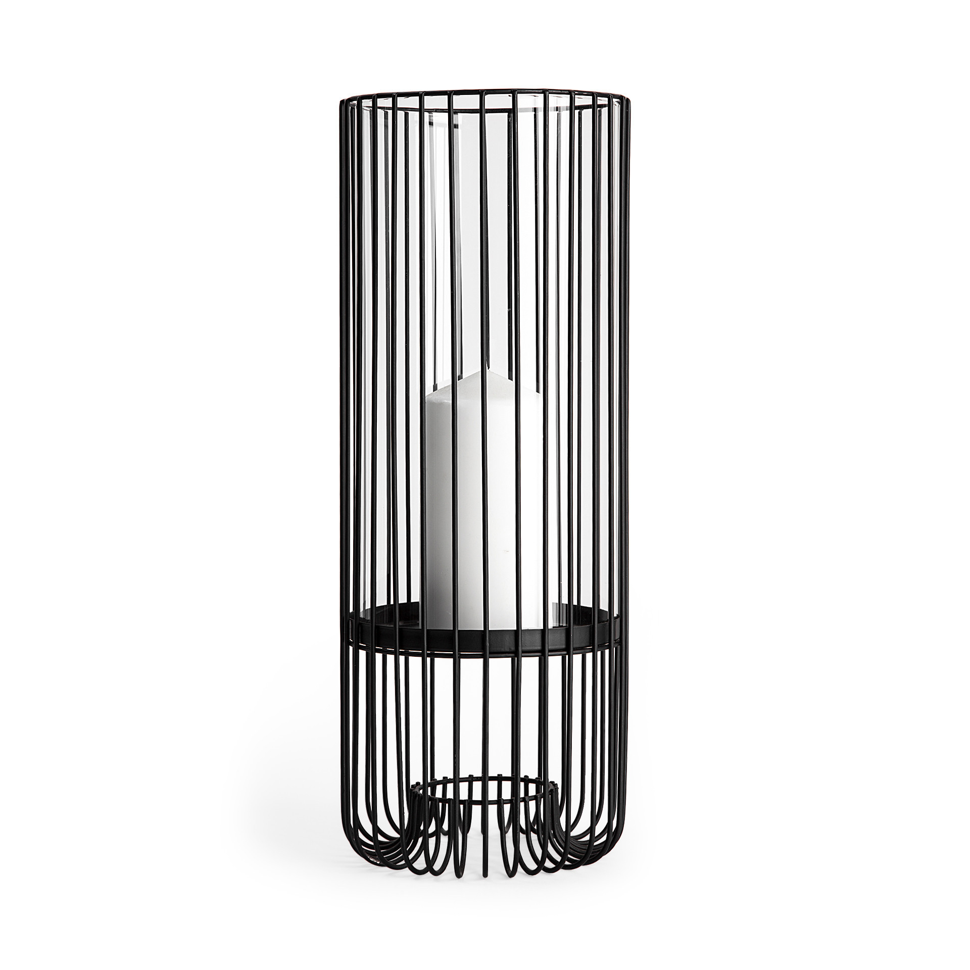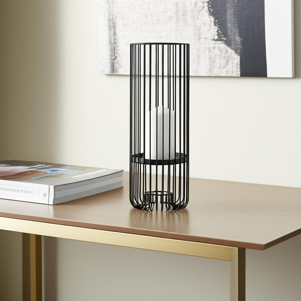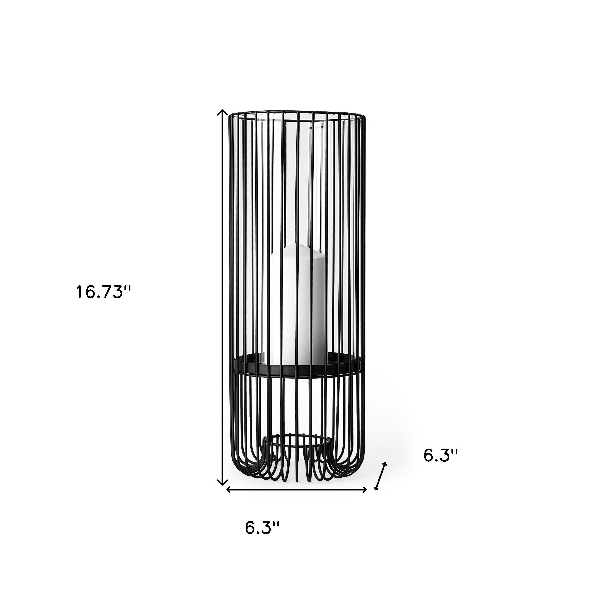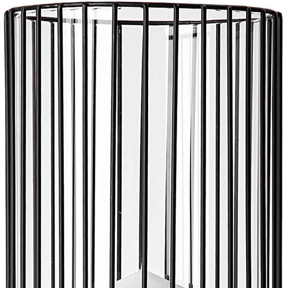 Bring the romantic glow of candlelight to your tabletop with this 17-inch black abstract metal and glass tabletop hurricane candle holder handmade by skilled craftsmen and designed to add a glamorous glow to any event or table setting. This candleholder is the perfect illuminating design to accent your space in style. Candleholders are a decorative accent on their own. With our without candles. 16.73-inch h x 6.3-inch w x 6.3-inch d.