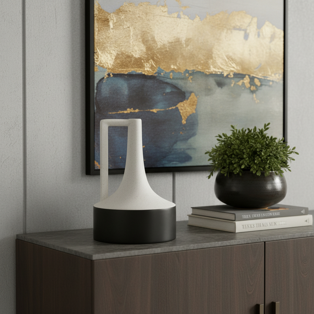 This 12-inch black and white ombre ceramic jug vase is the perfect accent for your living room, bedroom, dining room, or lounge. The sleek design of this jug vase adds a modern touch to any decor style. Crafted from high-quality ceramic, it showcases an elegant blend of colors that seamlessly transitions from black to white. Its unique shape makes it an eye-catching centerpiece, whether filled with fresh flowers or displayed on its own. This versatile piece is ideal for enhancing your home's aesthetic while providing a stylish storage solution for everyday essentials. 11.61-inch h x 7.87-inch w x 7.87-inch d.