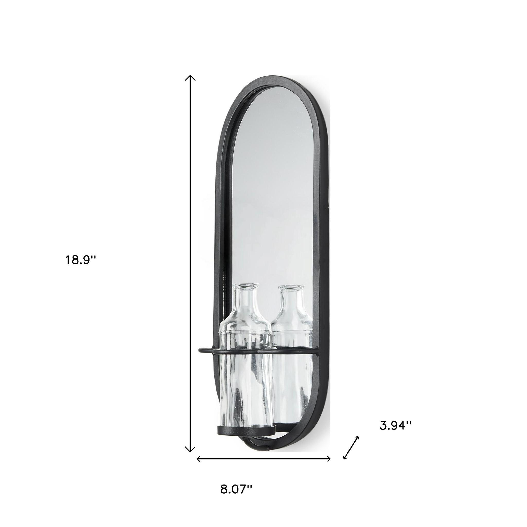 The 19-inch black and clear glass bottle metal and mirrored glass oval wall vase is a stunning addition to any contemporary space. This wall vase showcases an elegant oval shape that beautifully complements various decor styles. Crafted from durable metal and mirrored glass, it offers a modern aesthetic that catches the eye. Ideal for displaying fresh or dried flowers, this vase serves as both a functional item and a striking decorative piece, enhancing the ambiance of your home with its chic design. Elevate your interior with this stylish and versatile wall vase that seamlessly integrates into your living environment. 18.9-inch h x 8.07-inch w x 3.94-inch d.