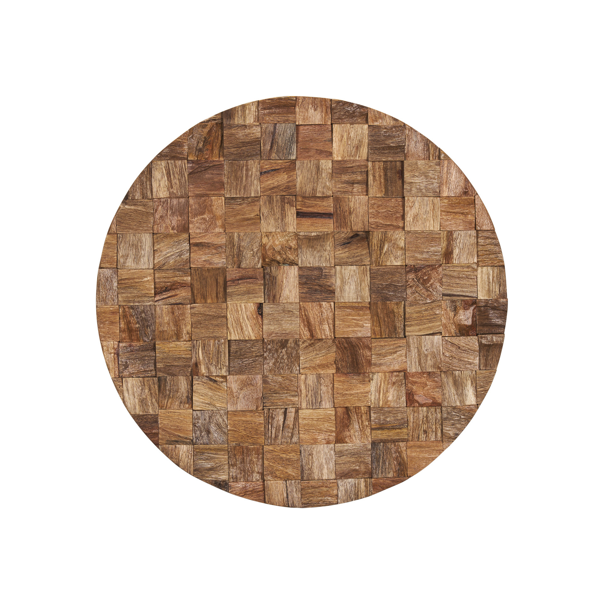 Handmade with care, this piece brings some authenticity to your space. With materials and a finish that is purposefully distressed, this hanging wall decor will instantly liven things up and bring color and dimension to your walls. The circular shape enhances its modern aesthetic, making it a striking focal point in any room. Crafted from quality wood, this decorative sculpture showcases unique wood scoring and rub-through techniques that add character to the design. Elevate your home decor with this stunning dimensional wall art that complements various styles effortlessly. 24.00-inch h x 24.00-inch w x 1.25-inch d.