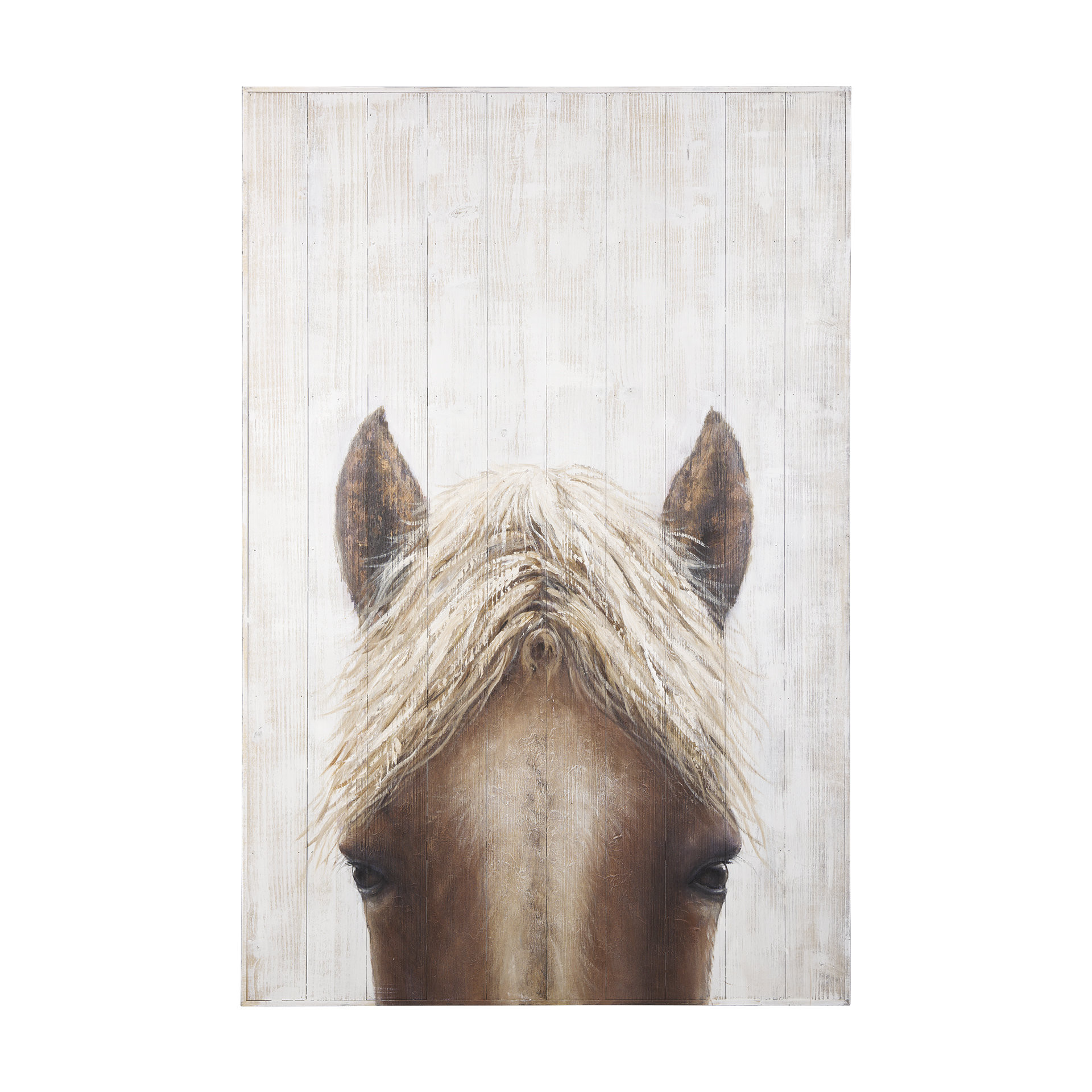 Add an air of fashion to your room and rejuvenate the space with this horse fringe distressed unframed painting wall art. Update your walls with this farm animal decor. Not a print, this fabulous work of art is truly hand-painted. Reproduced for you on wood, this hanging decorative accent will be a trendy and fashionable way to dress your walls in a rustic and modern farmhouse vibe. Hang on your wall to add some up to date fashion and decoration. Instantly liven up your space with this art that brings color and dimension to your walls. 22.05-inch h x 59.84-inch w x 1.57-inch d.