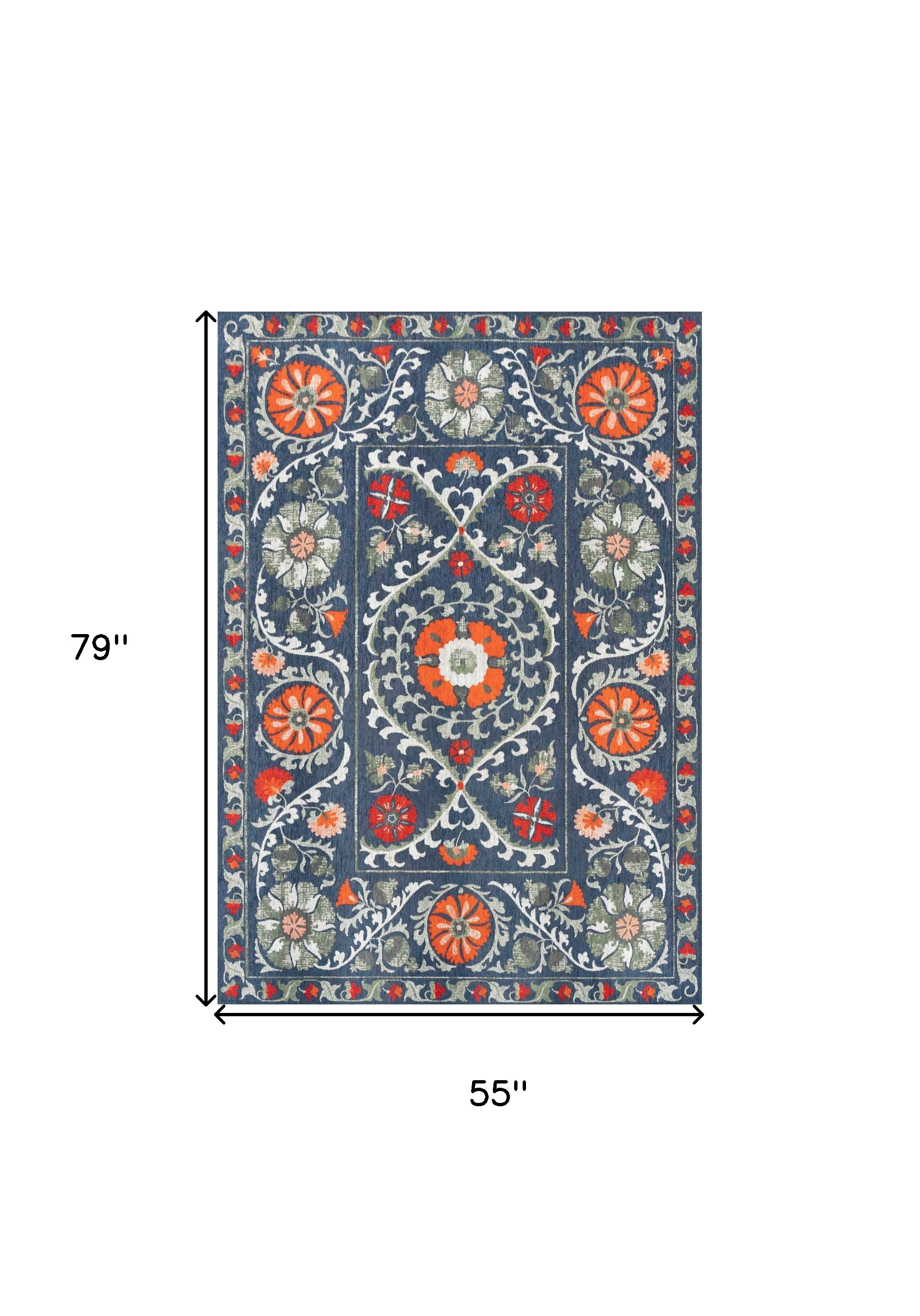This 5-foot x 7-foot blue orange and gray tribal washable area rug with uv protection, is a great way to add warmth to a room. Ideal for spaces with kids and pets, this rug is stain resistant to help repel dirt and spilled liquids. Crafted from eco-friendly 100% pet fibers that are made from recycled water bottles and other biodegradable items to give this rug a comfortable feel, stain resistance and the added benefit of reducing waste in our landfills. Rugs are a great way to showcase your style, hide imperfections, warm your home and reduce noise. This larger sized, traditional styled rug is ready to create a focal point or statement piece in your room. 55-inch h x 79-inch w x 0.12-inch d.