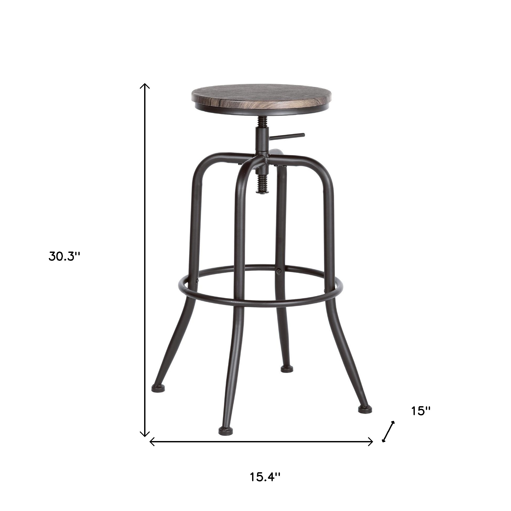 Comfortable enough to sit in for awhile, this set of two walnut and black wood and iron backless adjustable height swivel bar chairs will transcend the look of your room. The walnut manufactured wood seat of this stool is a nice contrast to the high quality, black iron of the base. A backless mixed with a round shaped seat makes this chair both comfortable and fashionable. Designed with a footrest for comfort and convenience. The round shape of the seat combines with a backless to give this chair a comfortable and fashionable look. 30.3-inch h x 15-inch w x 15.4-inch d.