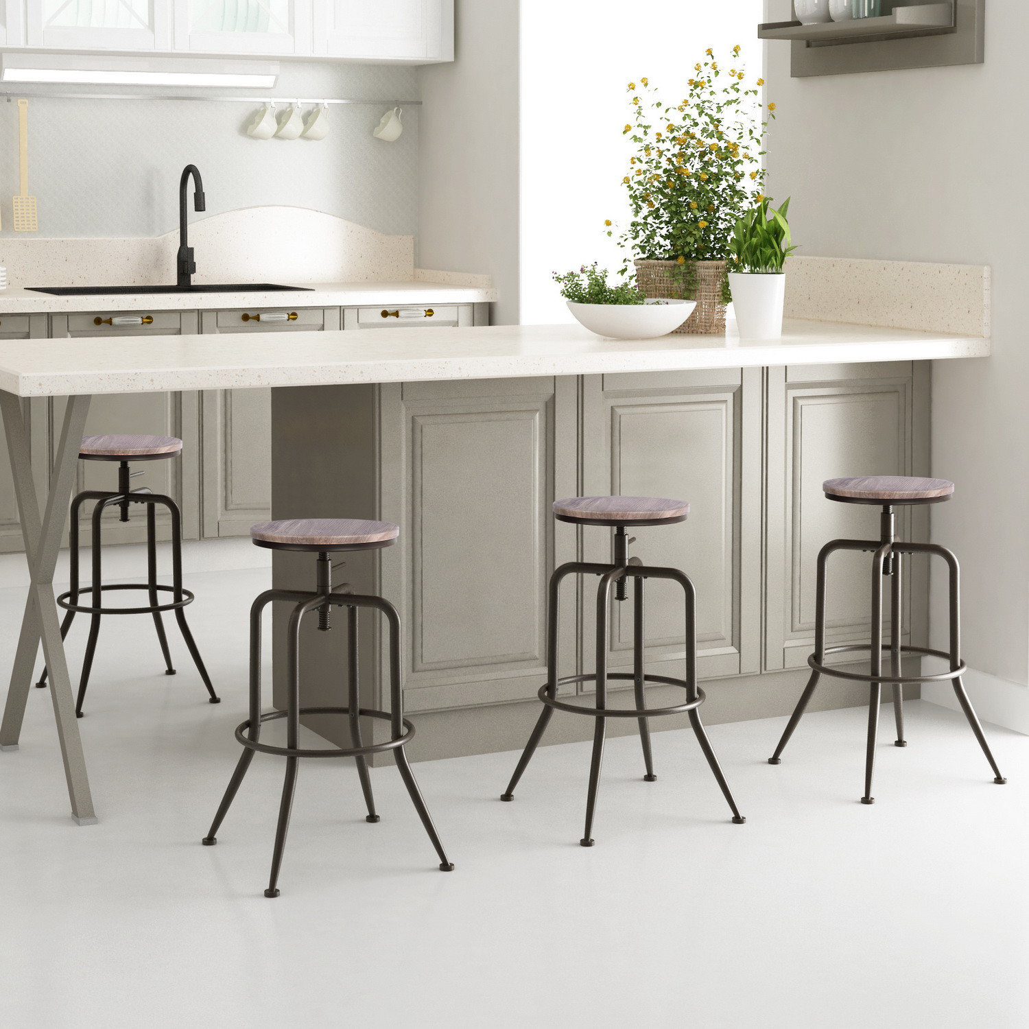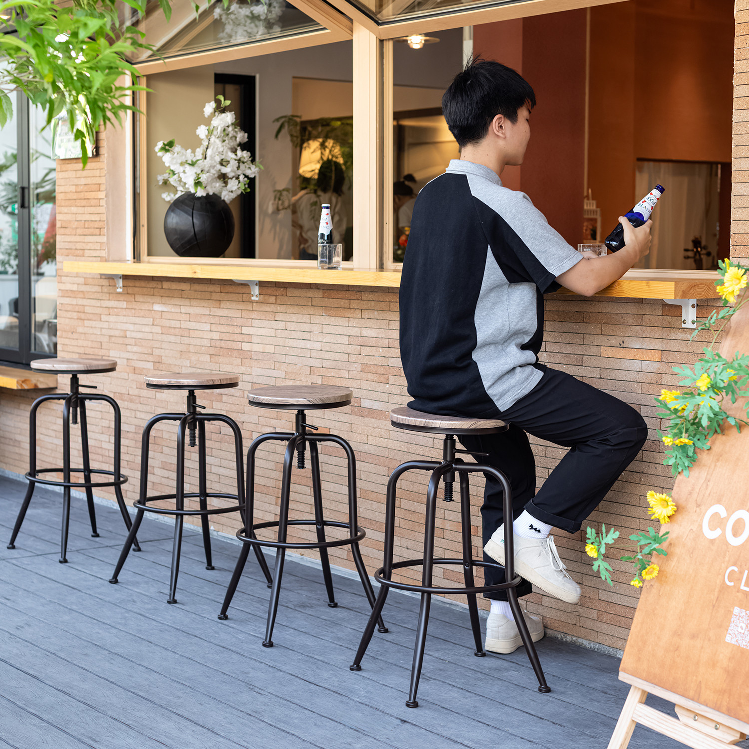 adjustable height swivel bar chairs, height swivel bar chairs, swivel bar chairs, set walnut black wood, wood iron backless adjustable |