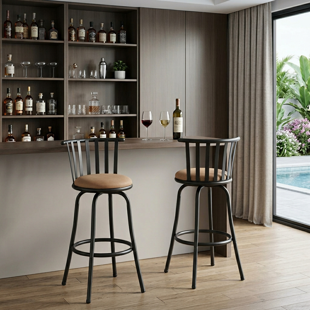adjustable height swivel bar chairs, set brown black faux leather, swivel bar chairs, brown black faux leather iron, faux leather iron low adjustable |