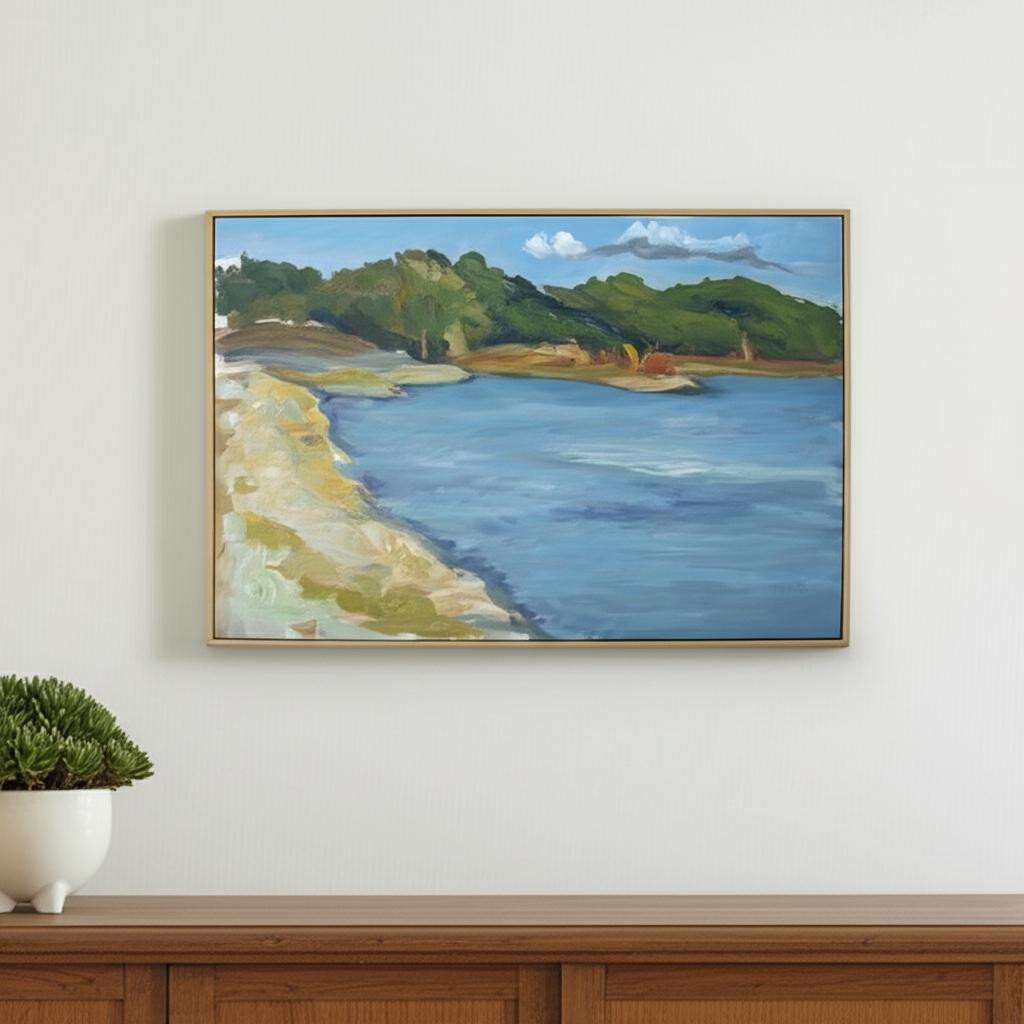 Add an air of fashion to your room and rejuvenate the space with this inlet beach natural floater frame wall art. This acrylic painting is a way to express your artistic style and add some fashion to your walls. Not a print, this fabulous work of art is truly hand-painted. Reproduced for you on canvas, this hanging decorative accent will be a trendy and fashionable way to dress your walls. Adding this hanging wall art to your space to make your room feel more finished and attractive. Instantly liven up your space with this art that brings color and dimension to your walls. 24-inch h x 36-inch w x 1.5-inch d.