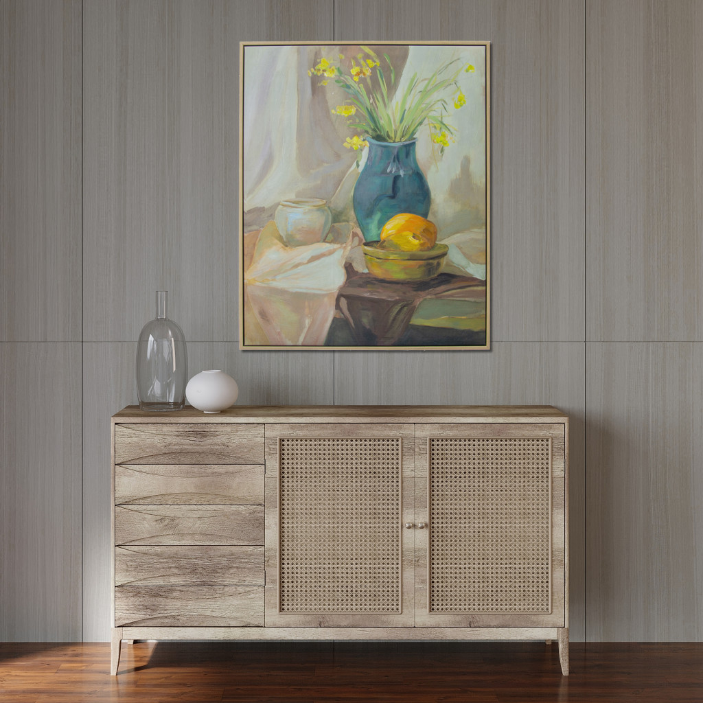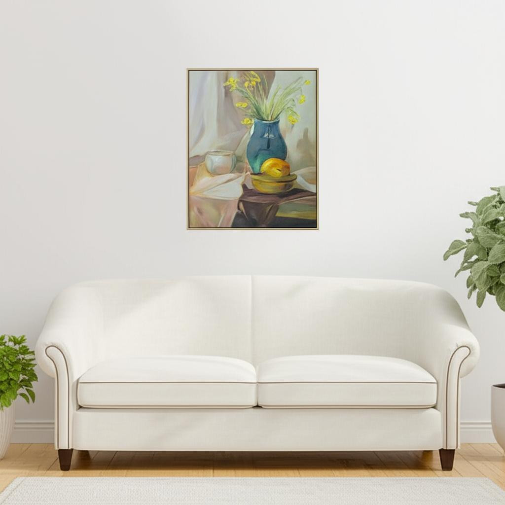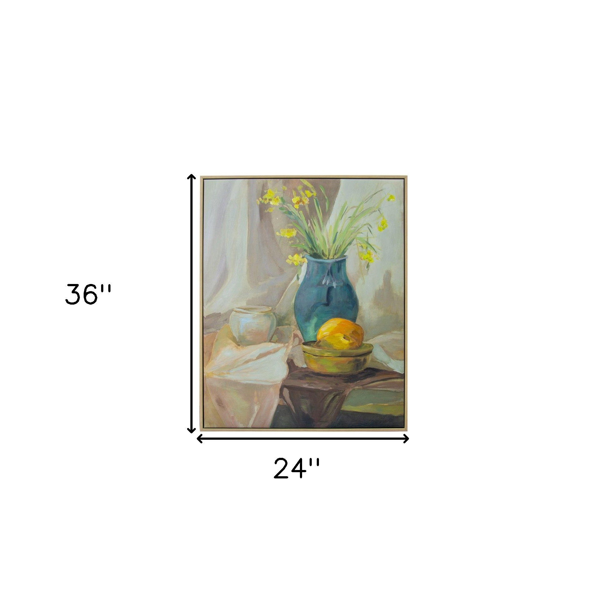 Add an air of fashion to your room and rejuvenate the space with this still life vase natural floater frame wall art. This watercolor painting is a way to express your artistic style and add some fashion to your walls. Not a print, this fabulous work of art is truly hand-painted. Reproduced for you on canvas, this hanging decorative accent will be a trendy and fashionable way to dress your walls. Hang on your wall to add some up to date fashion and decoration. Utilize this opportunity to create a focal point in the room with this fabulous wall decor option. 36-inch h x 24-inch w x 1.5-inch d.