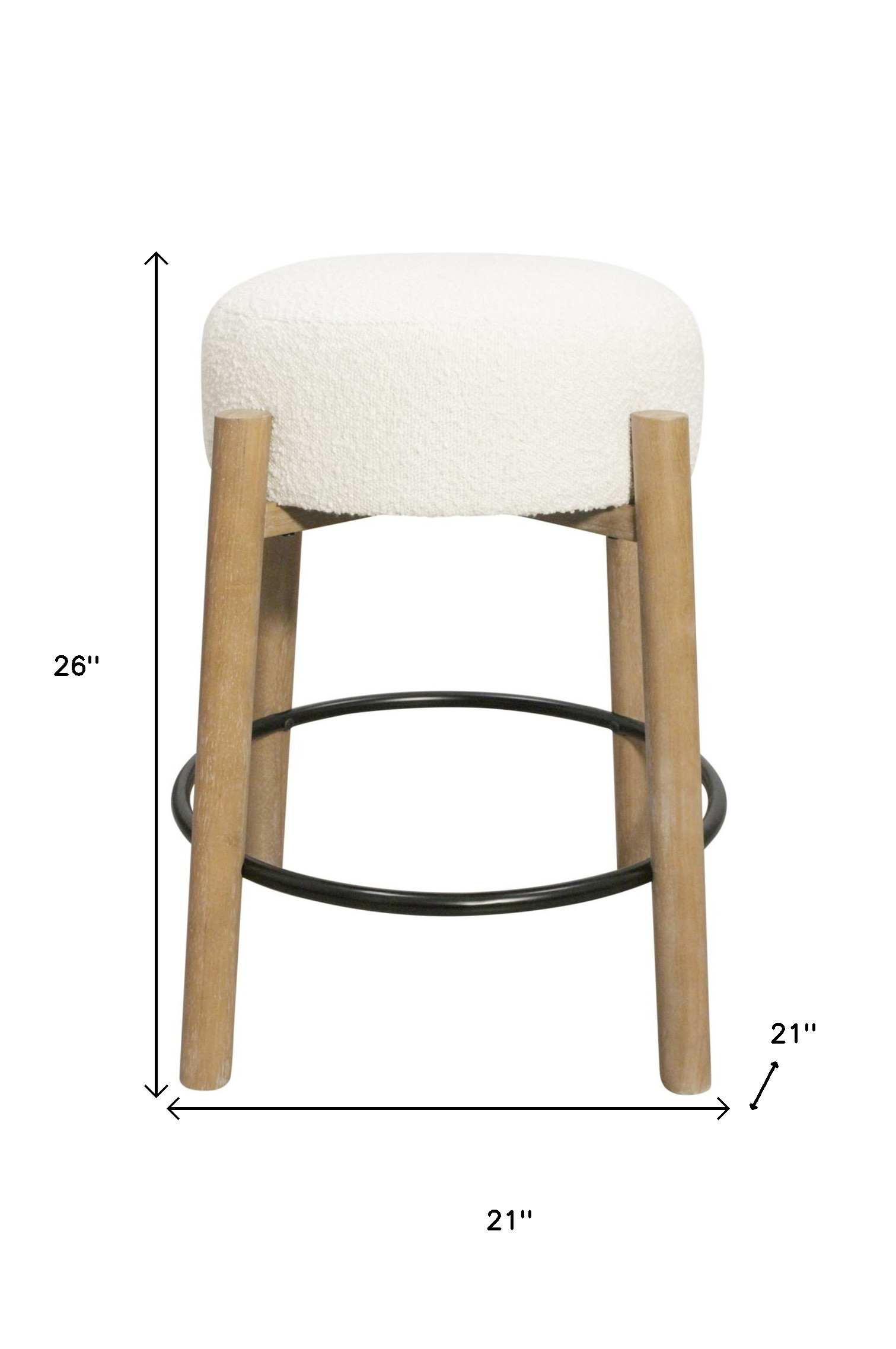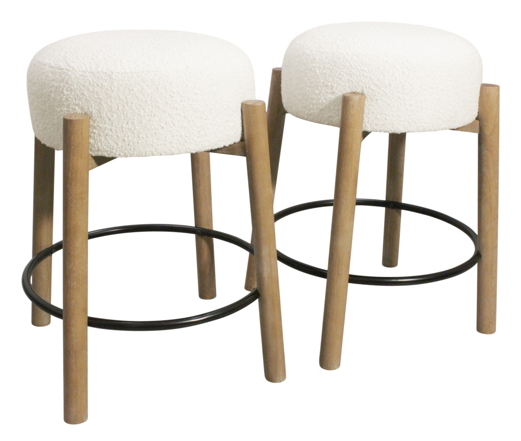 This set of two ivory and natural fabric and solid wood backless counter height bar chairs will be the perfect way to add some cool design and utility to your space similar to what you find in your favorite cafes or pubs. Quality construction from natural solid wood combines with ivory upholstered to give this stool a fresh and updated look. The round shape of the seat give this backless chair a fresh and fashionable look. Designed with a footrest for comfort and convenience. Not only good looking and stylish, this chair features a round shaped seat and a backless for the ultimate in comfort and enjoyment. 26.00-inch h x 21.00-inch w x 21.00-inch d.