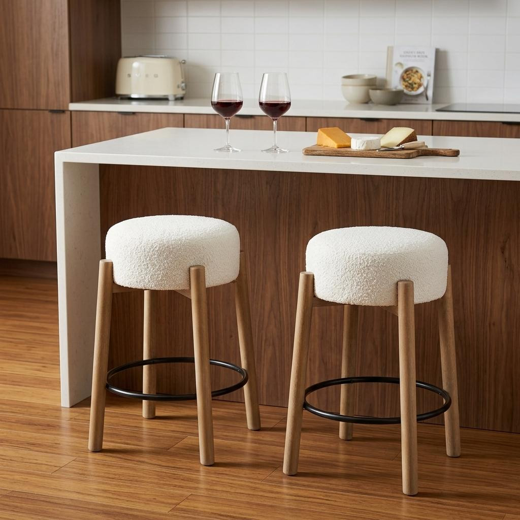 backless counter height bar chairs, ivory natural fabric solid wood, fabric solid wood backless counter, counter height bar chairs, set ivory natural fabric |