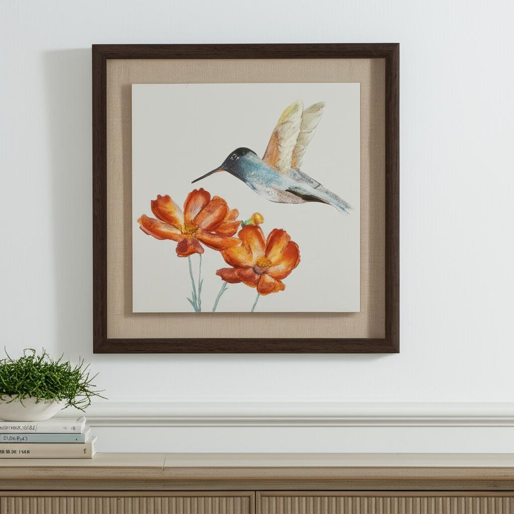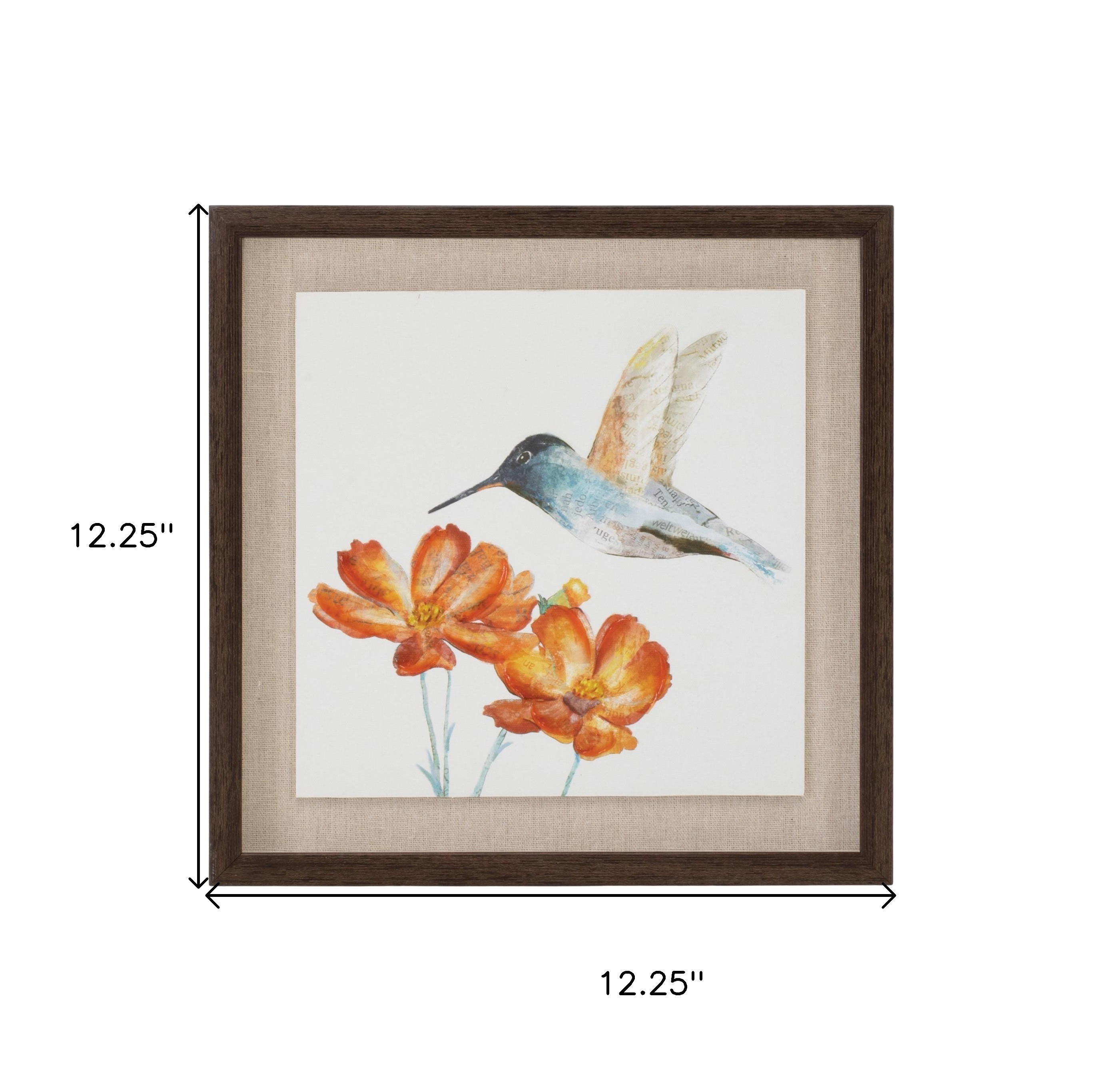 Add an air of fashion to your room and rejuvenate the space with this set of two n and a walnut floater frame wall art. This bird inspired art will be a great addition to your space. Reproduced for you on canvas, this hanging decorative accent will be a trendy and fashionable way to dress your walls. Hang on your wall to add some up to date fashion and decoration. Utilize this opportunity to create a focal point in the room with this fabulous wall decor option. 12.25-inch h x 12.25-inch w x 1.25-inch d.