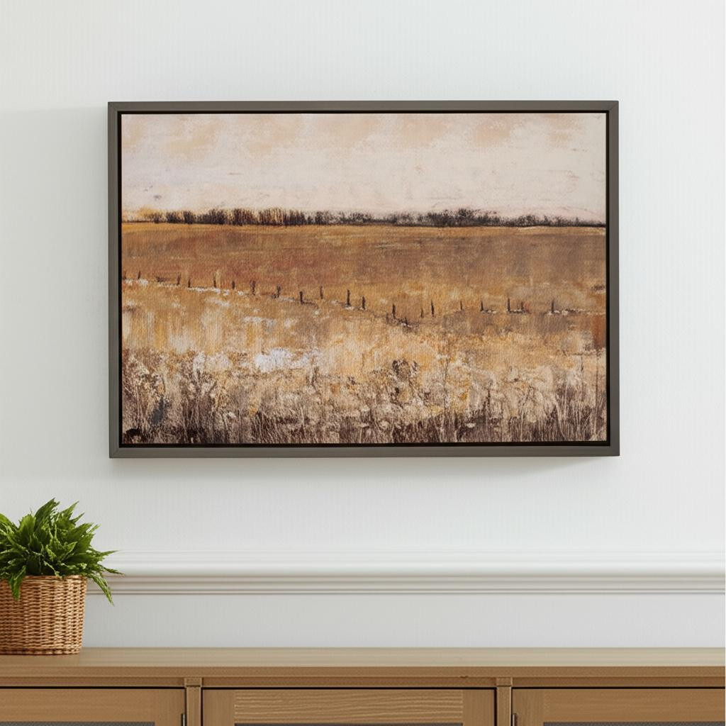 This n and a gray framed wall art will add a beautiful decorative accent to your decor. Reproduced for you on canvas, this hanging decorative accent will be a trendy and fashionable way to dress your walls. Adding this hanging wall art to your space to make your room feel more finished and attractive. Instantly liven up your space with this art that brings color and dimension to your walls. 23.75-inch h x 34-inch w x 1.25-inch d.