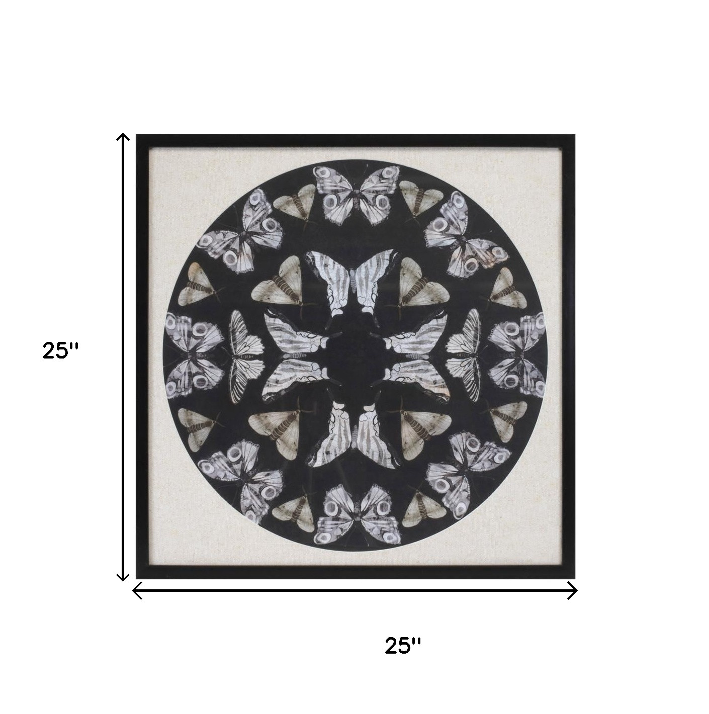 Bring some sizzle to your space with this eye-catching n and a black floater frame wall art. This butterfly inspired art will be a great addition to your space. Reproduced for you on plastic, this hanging decorative accent will be a trendy and fashionable way to dress your walls. Hang on your wall to add some up to date fashion and decoration. Utilize this opportunity to create a focal point in the room with this fabulous wall decor option. 25-inch h x 25-inch w x 1.25-inch d.