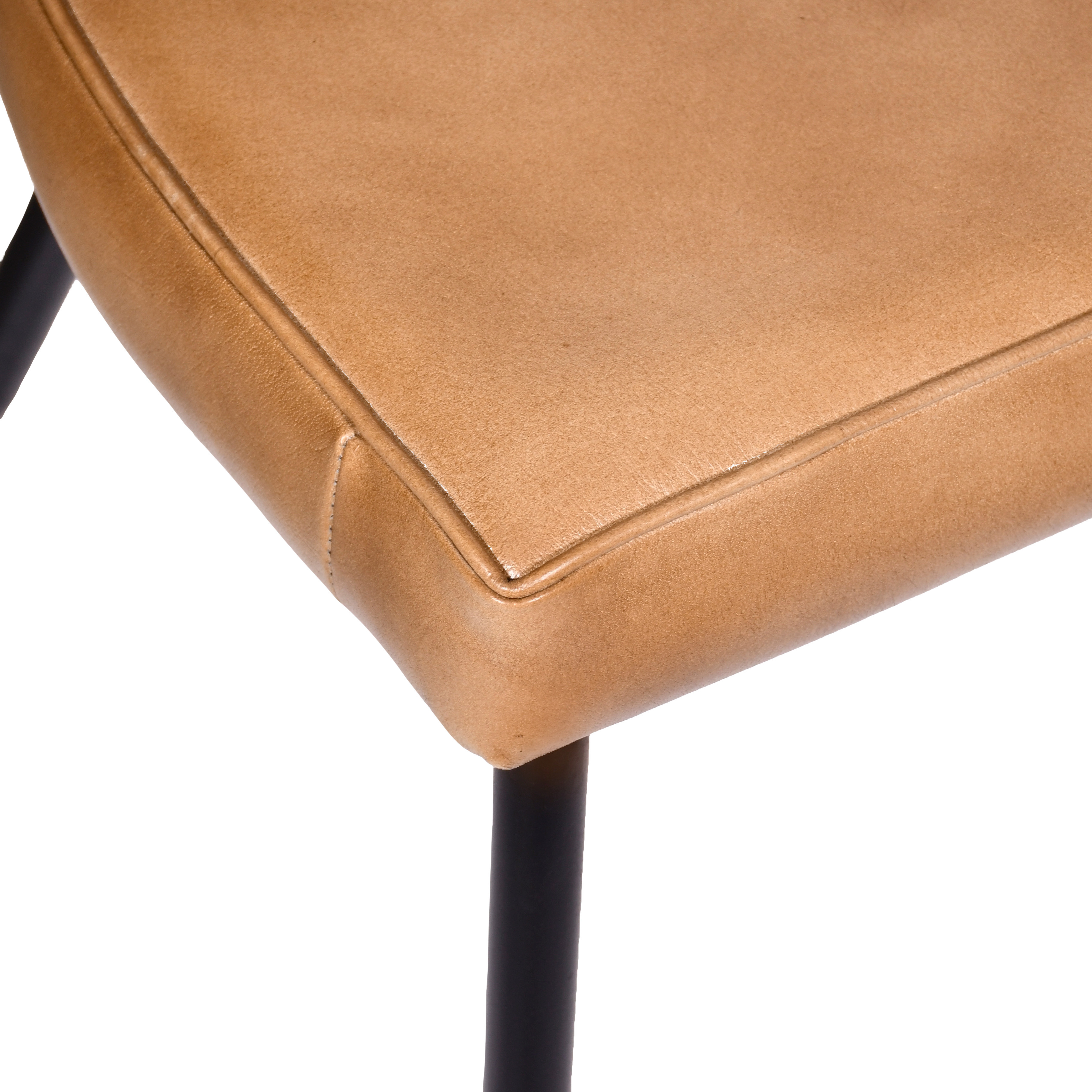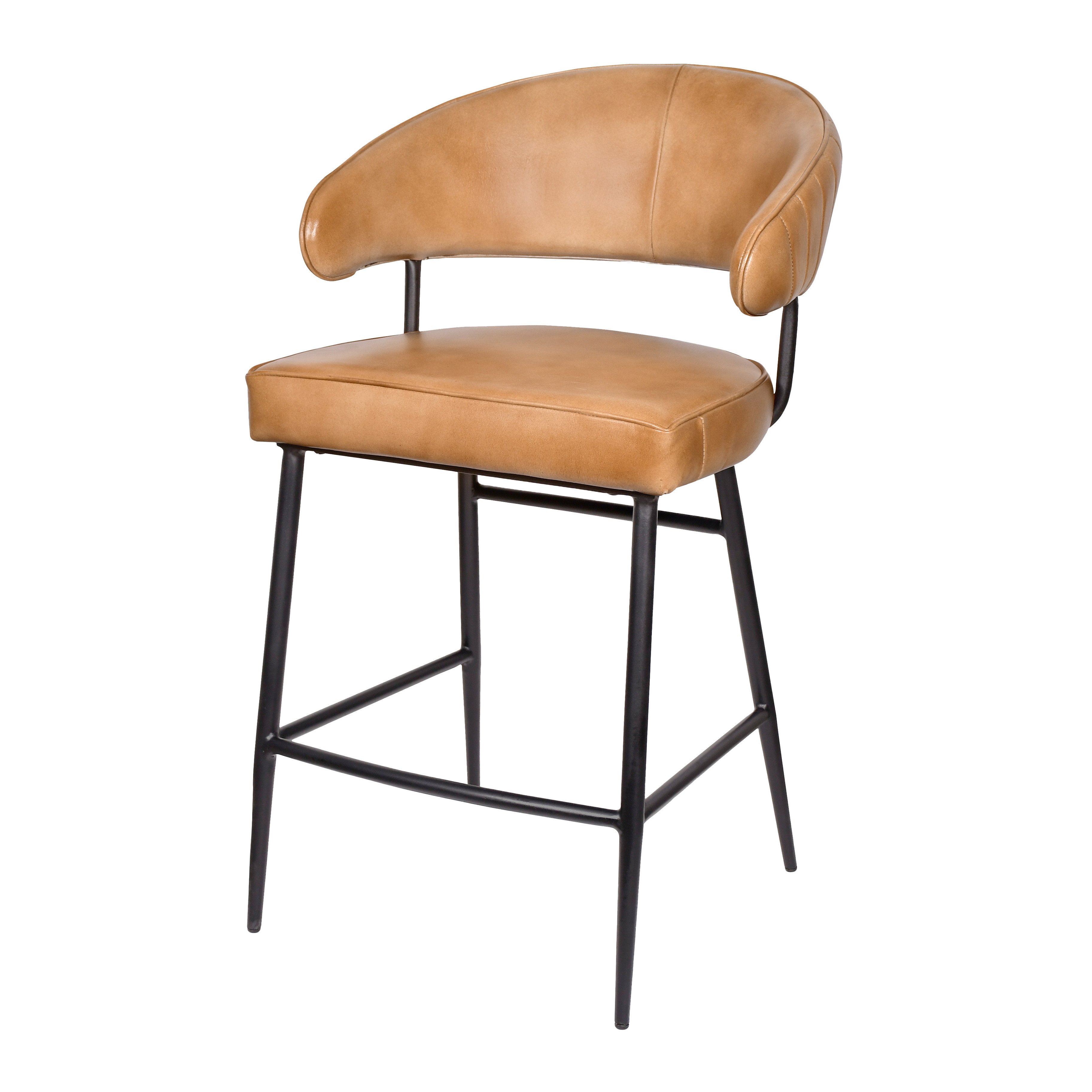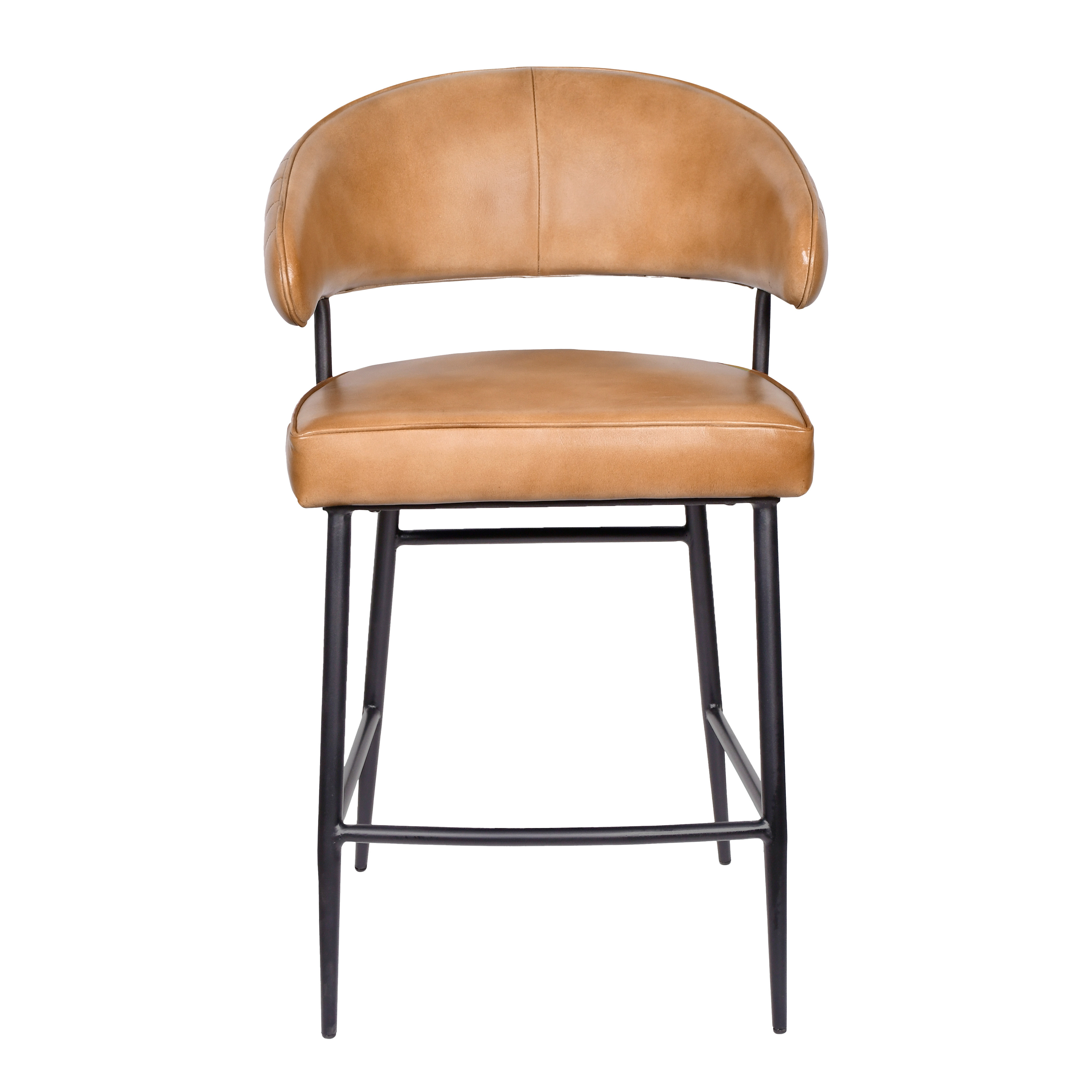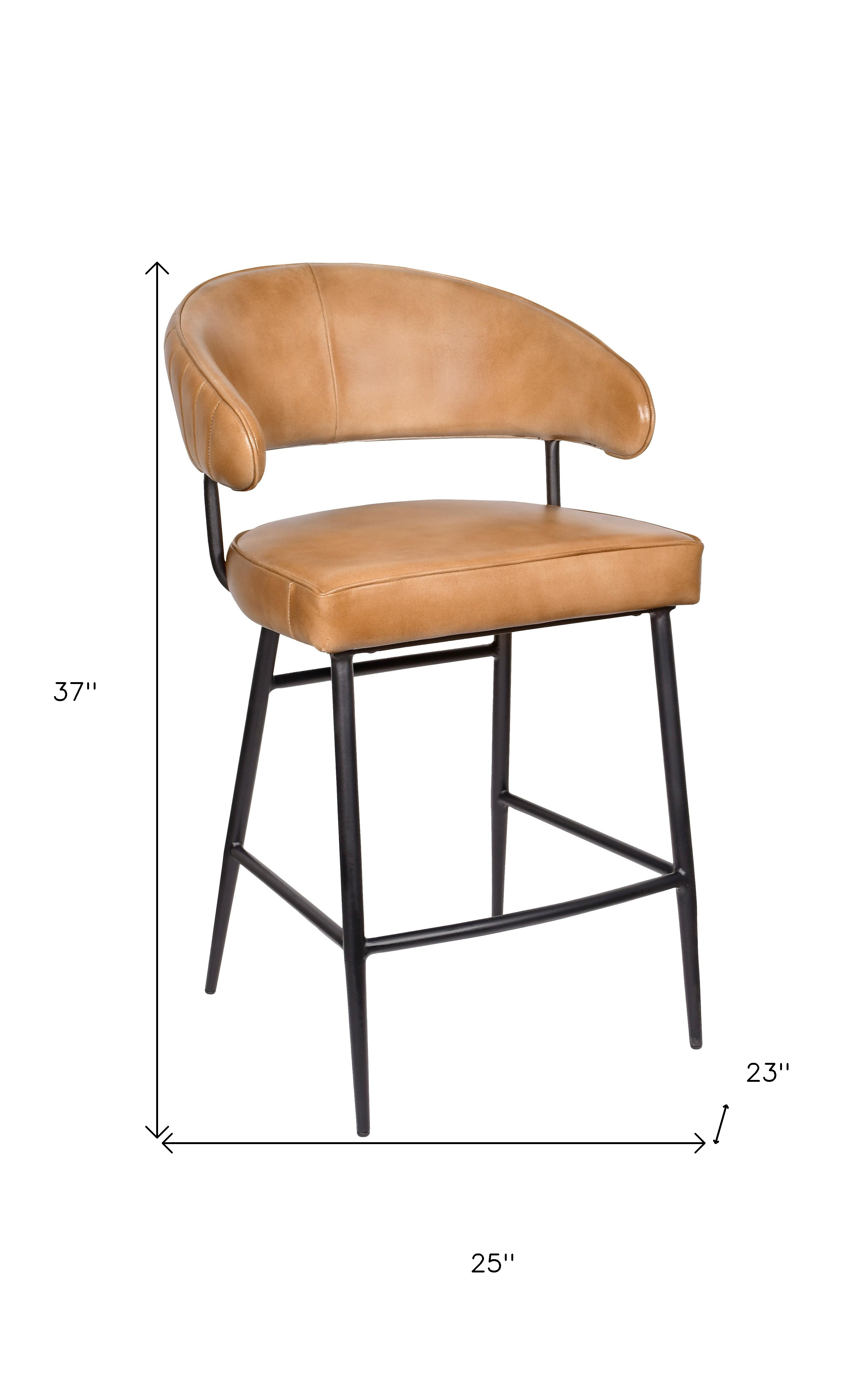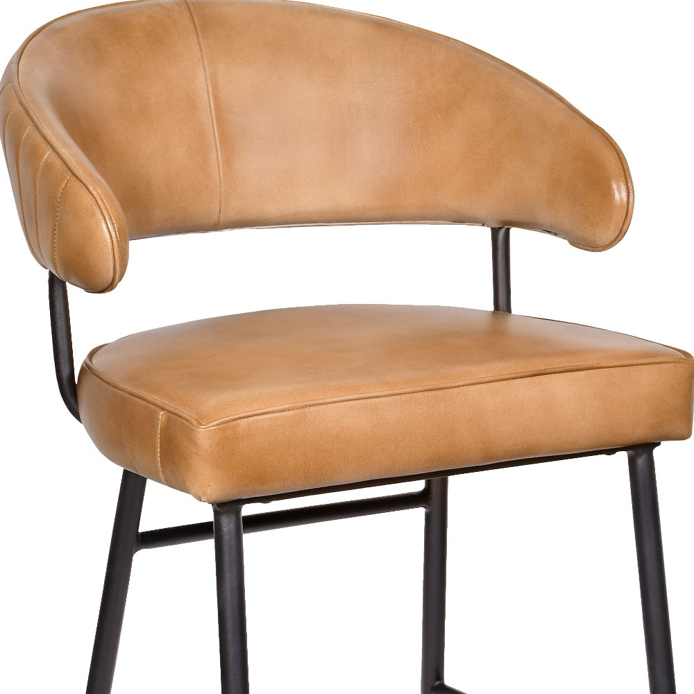 Bring a trendy bar vibe to your space, with this tan and black leather genuine leather and iron low back counter height bar chair. The base of this stool is made from iron in a black color that is a nice contrast to the tan leather seat. Designed with a footrest for comfort and convenience. The bucket shape of the seat combines with a low back to give this chair a comfortable and fashionable look. 37.00-inch h x 23.00-inch w x 25.00-inch d.