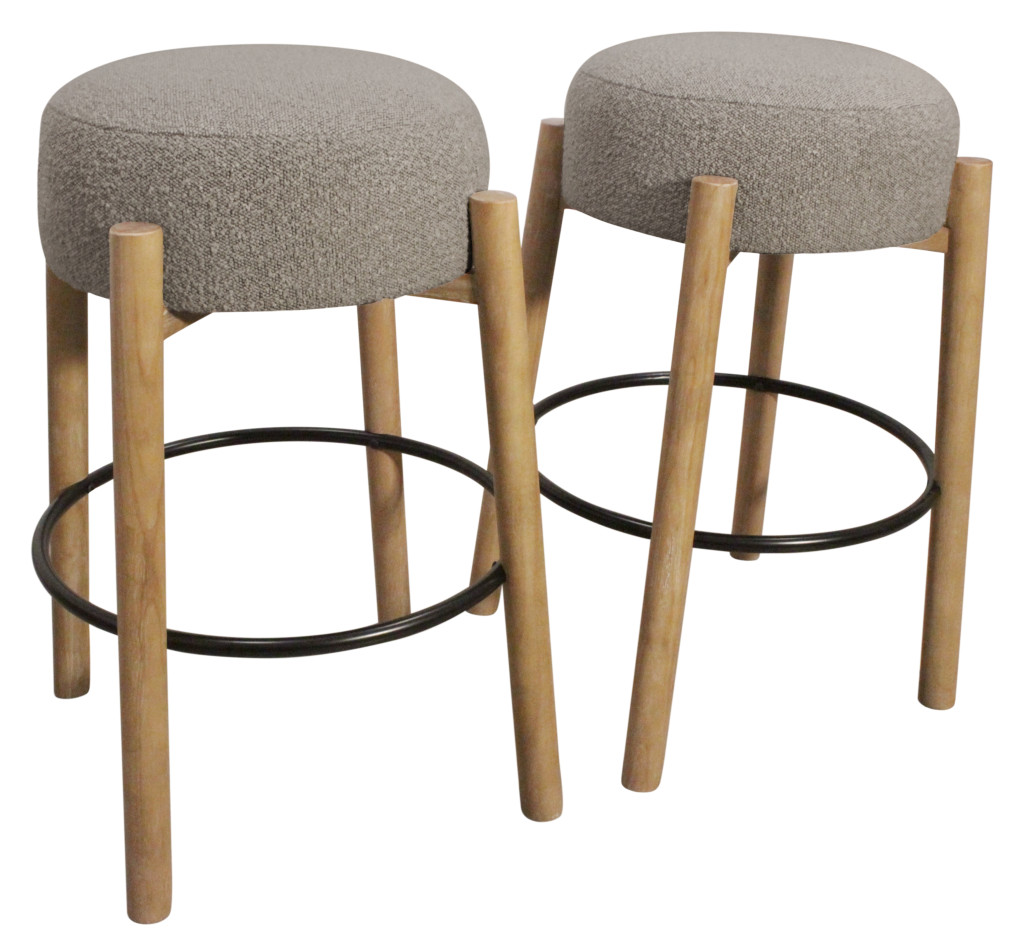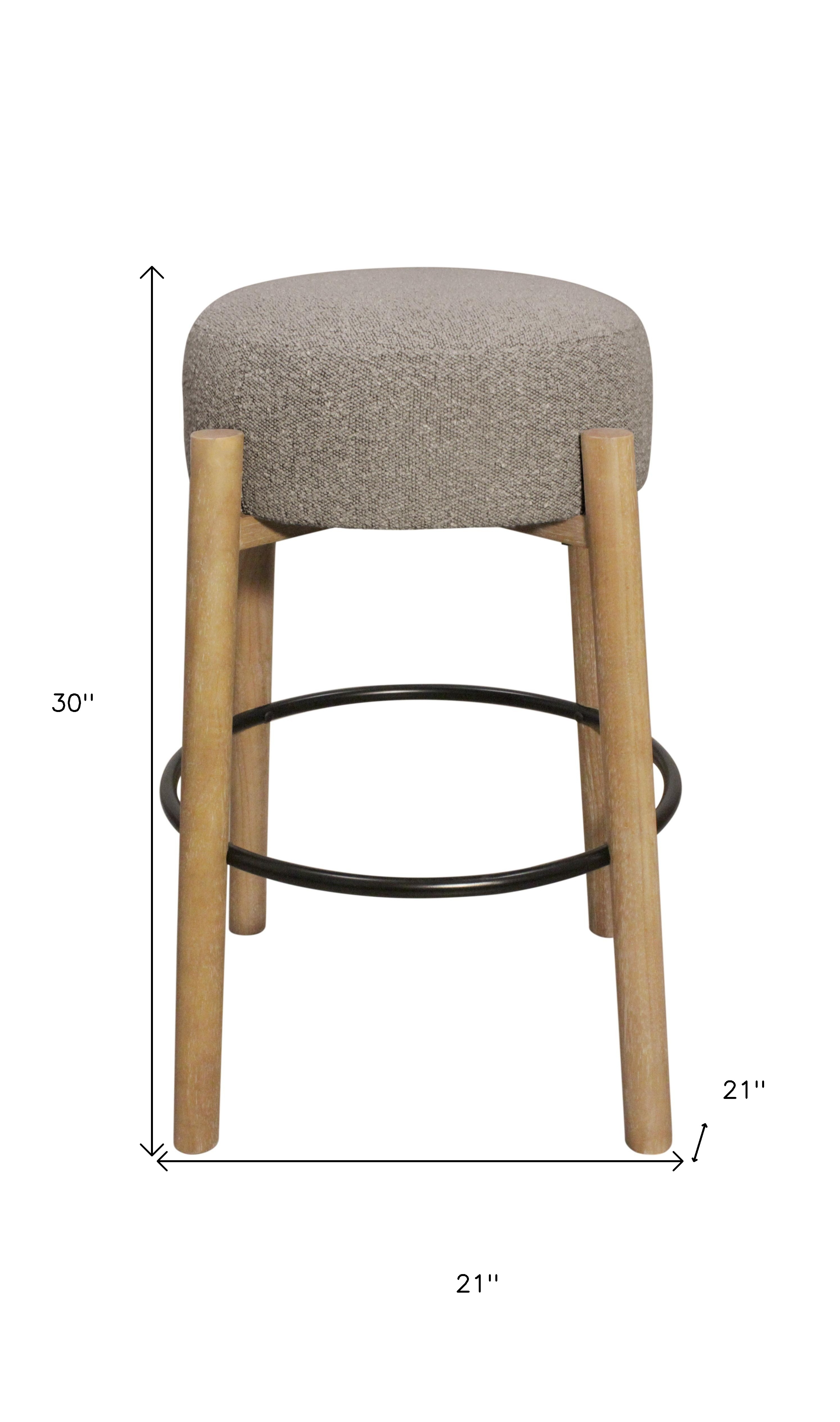 Comfort and design come together nicely in this set of two gray and natural fabric and solid wood backless bar height bar chairs. The gray upholstered seat of this stool is a nice contrast to the high quality, natural solid wood of the base. Designed to be good looking and practical, this backless bar chair features a round shaped seat. Designed with a footrest for comfort and convenience. The round shape of the seat combines with a backless to give this chair a comfortable and fashionable look. 30.00-inch h x 21.00-inch w x 21.00-inch d.