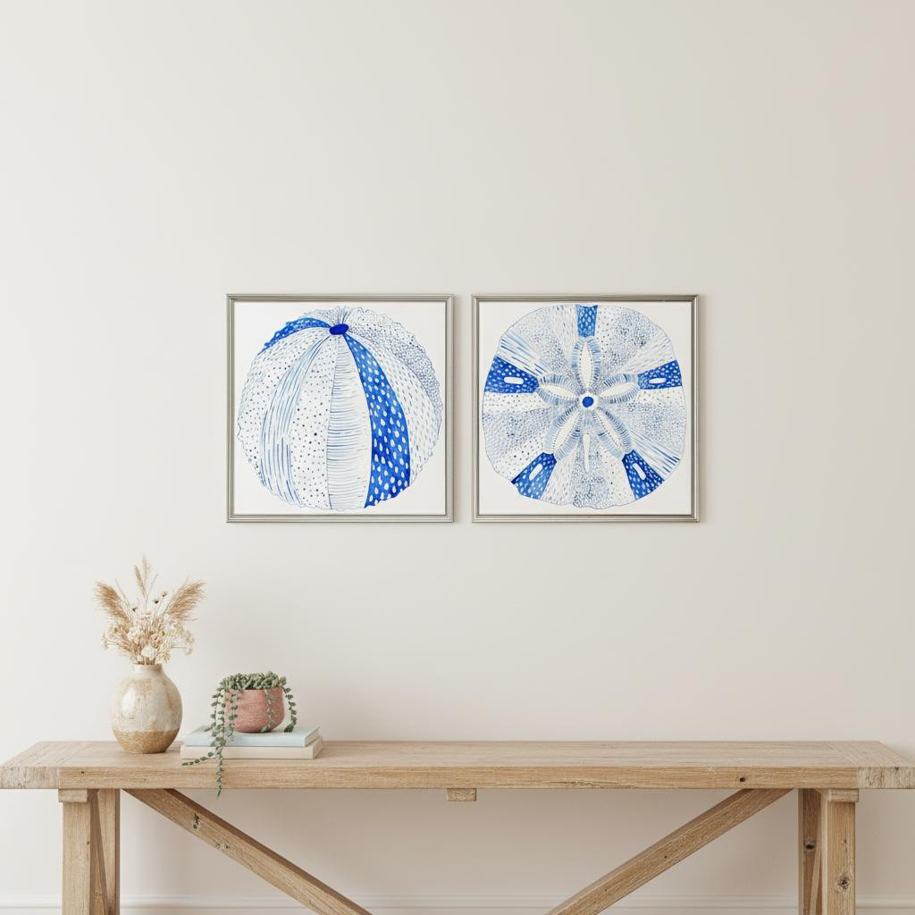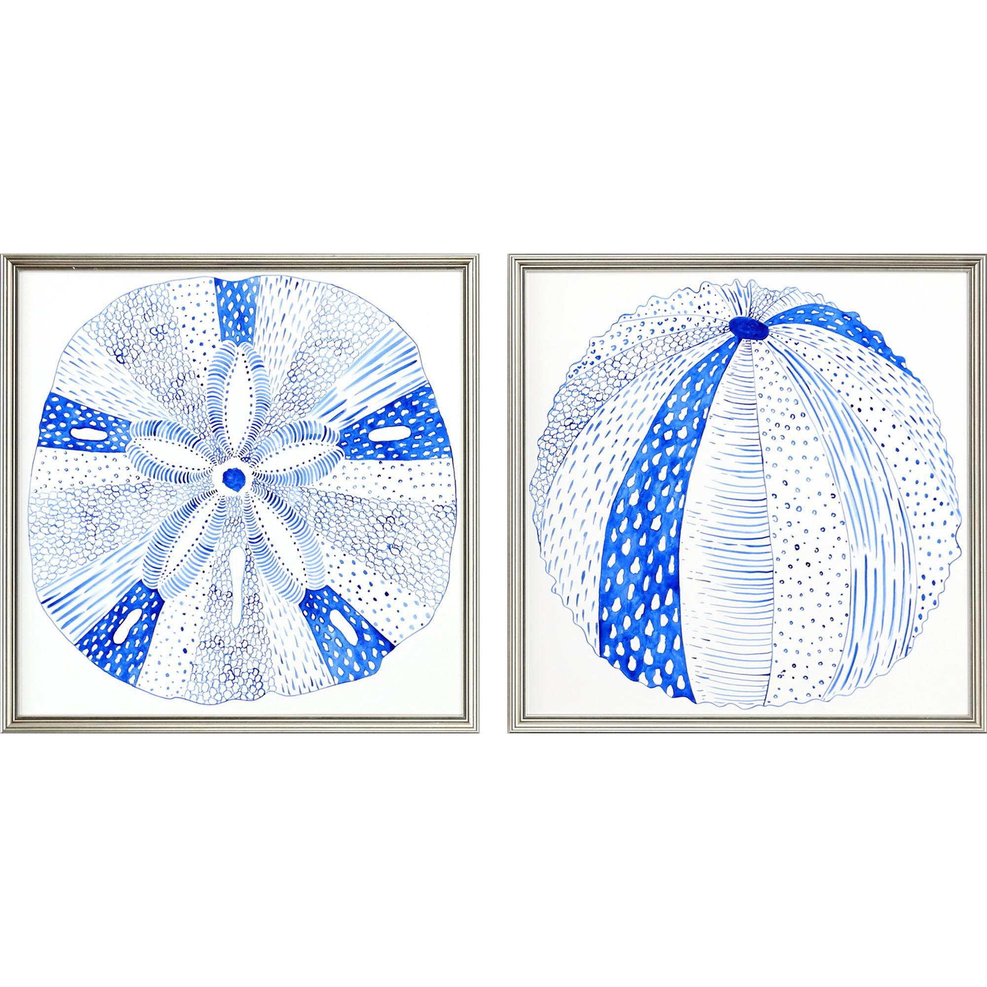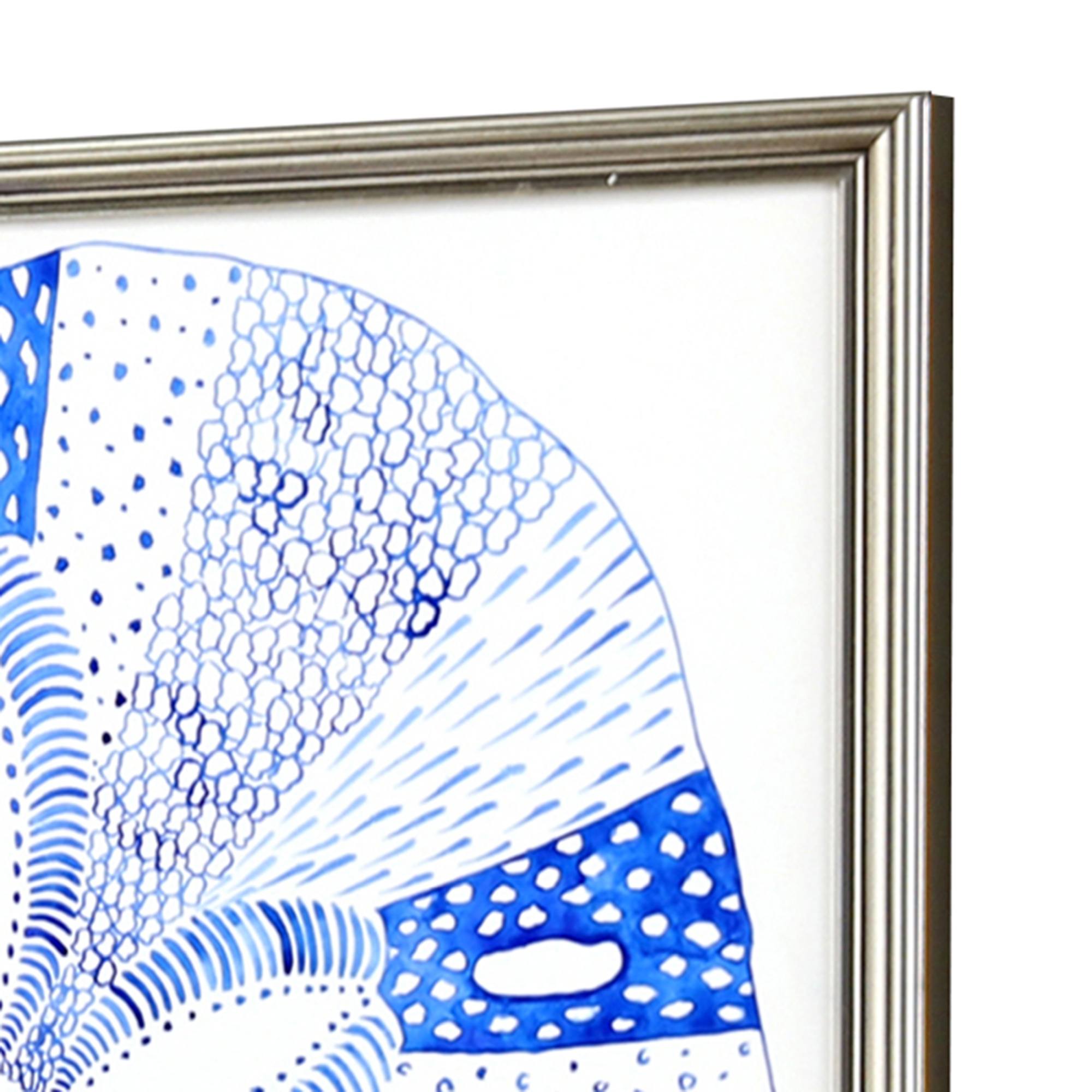 Unique and decorative, this set of two indigo shell ii silver framed wall art will leave a lasting impression. This block print is a way to express your artistic style and add some fashion to your walls. Reproduced for you on paper, this hanging decorative accent will be a trendy and fashionable way to dress your walls. Hang on your wall to add some up to date fashion and decoration. Utilize this opportunity to create a focal point in the room with this fabulous wall decor option. 23.00-inch h x 23.00-inch w x 1.00-inch d.